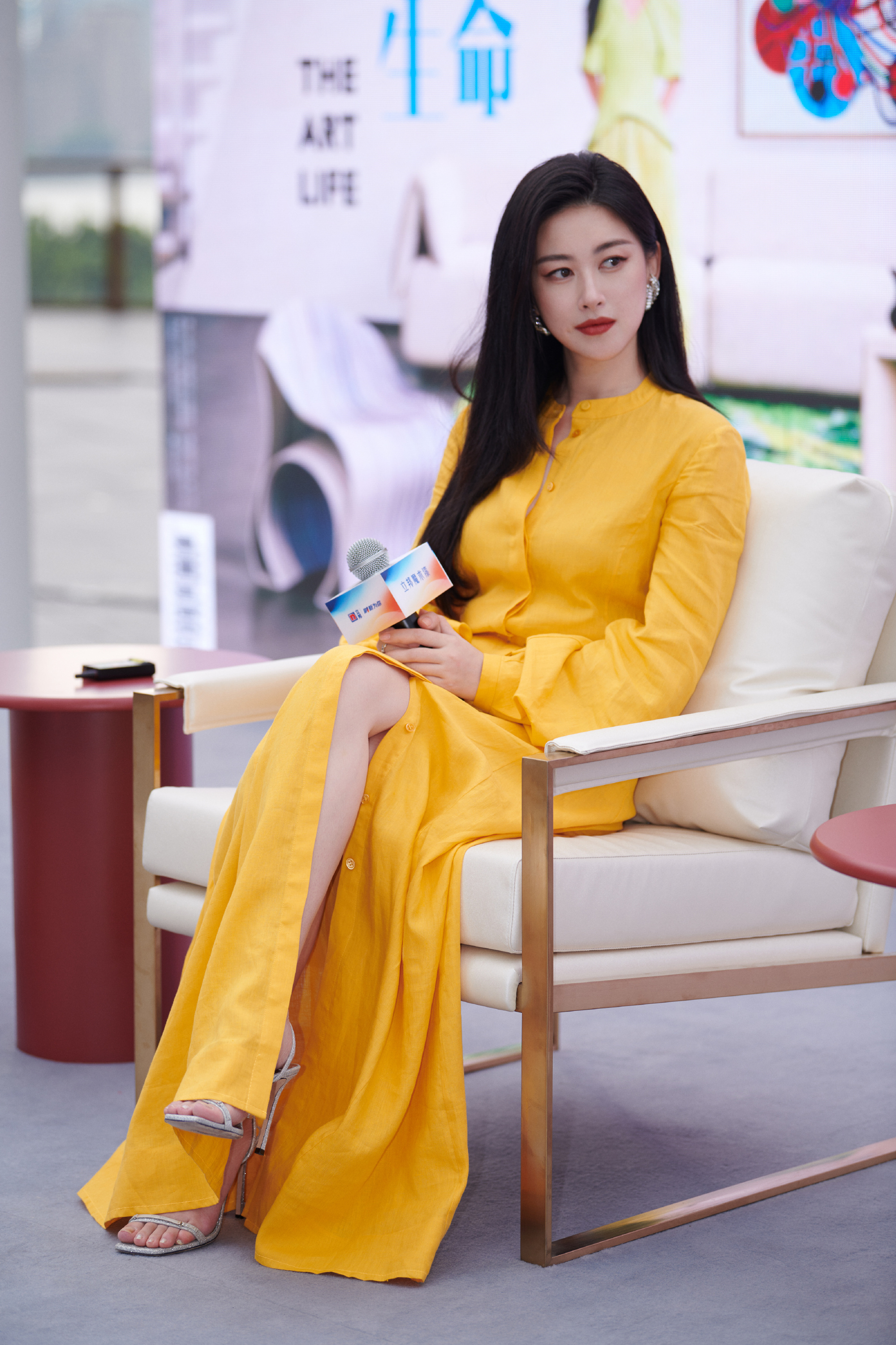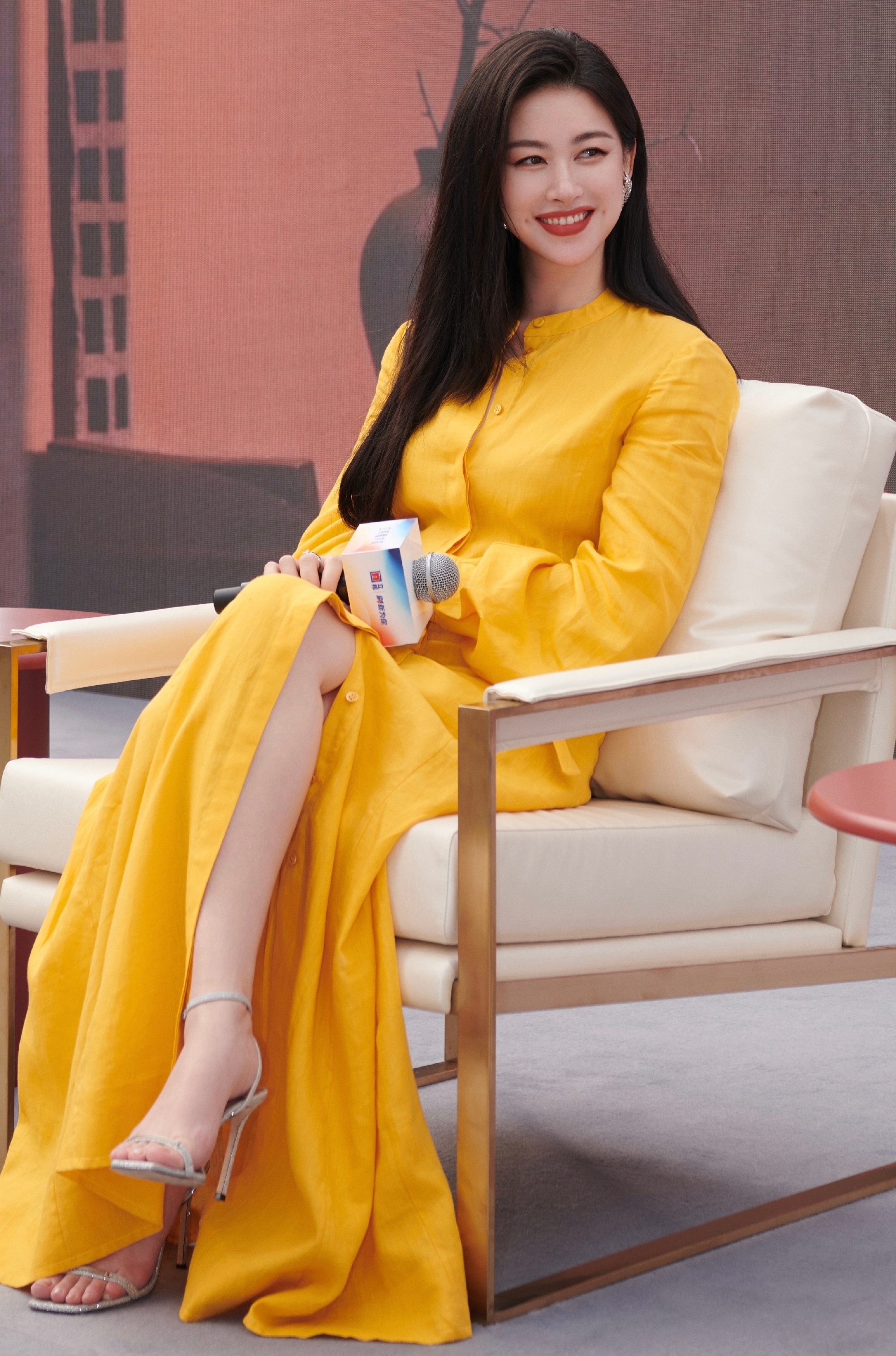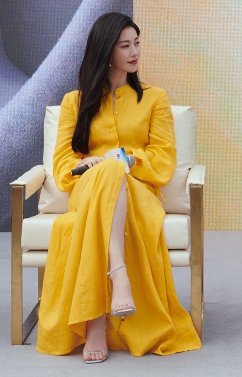 朱珠,一字带高跟鞋穿搭,好优雅温柔的姐姐。朱珠