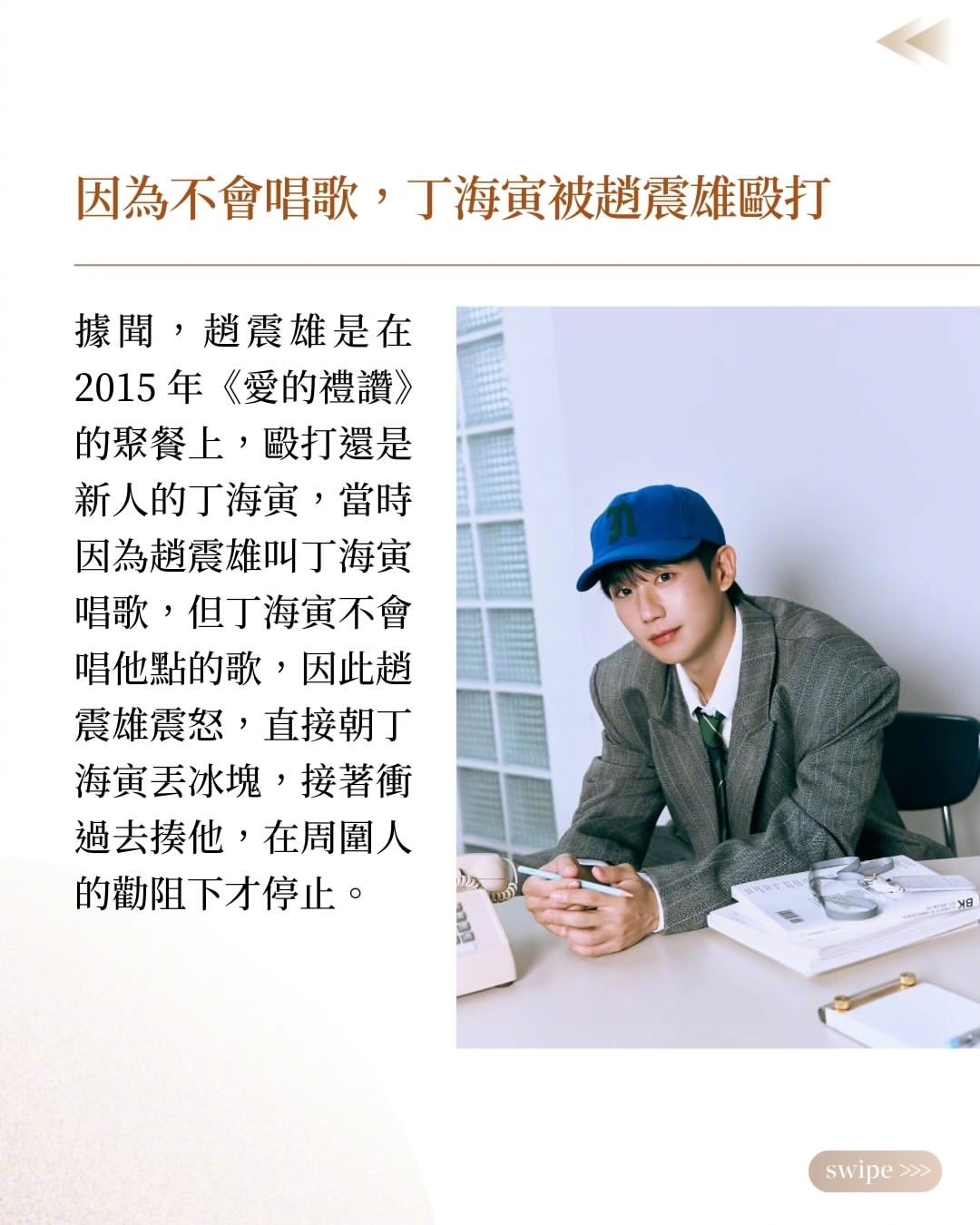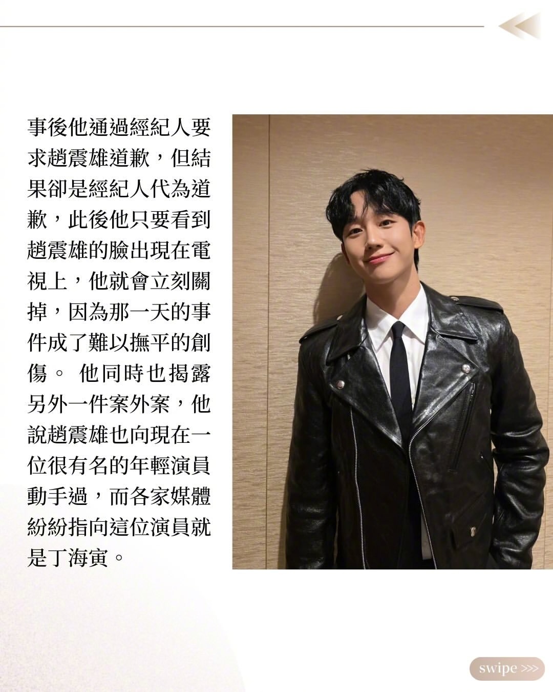 D社爆赵震雄曾殴打丁海寅,韩国娱乐圈这两天挺热闹的,在D社曝光赵震雄少年犯罪史后