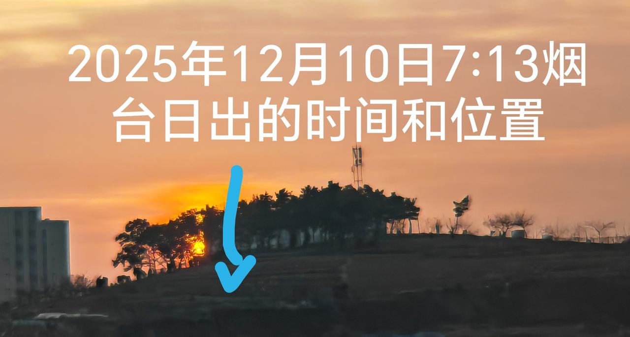 烟台每天早晨的日出时间和位置不一样。 2025年12日10日7:13日出时间,昨天是7:09,相差时间差4分钟,位置也不同。