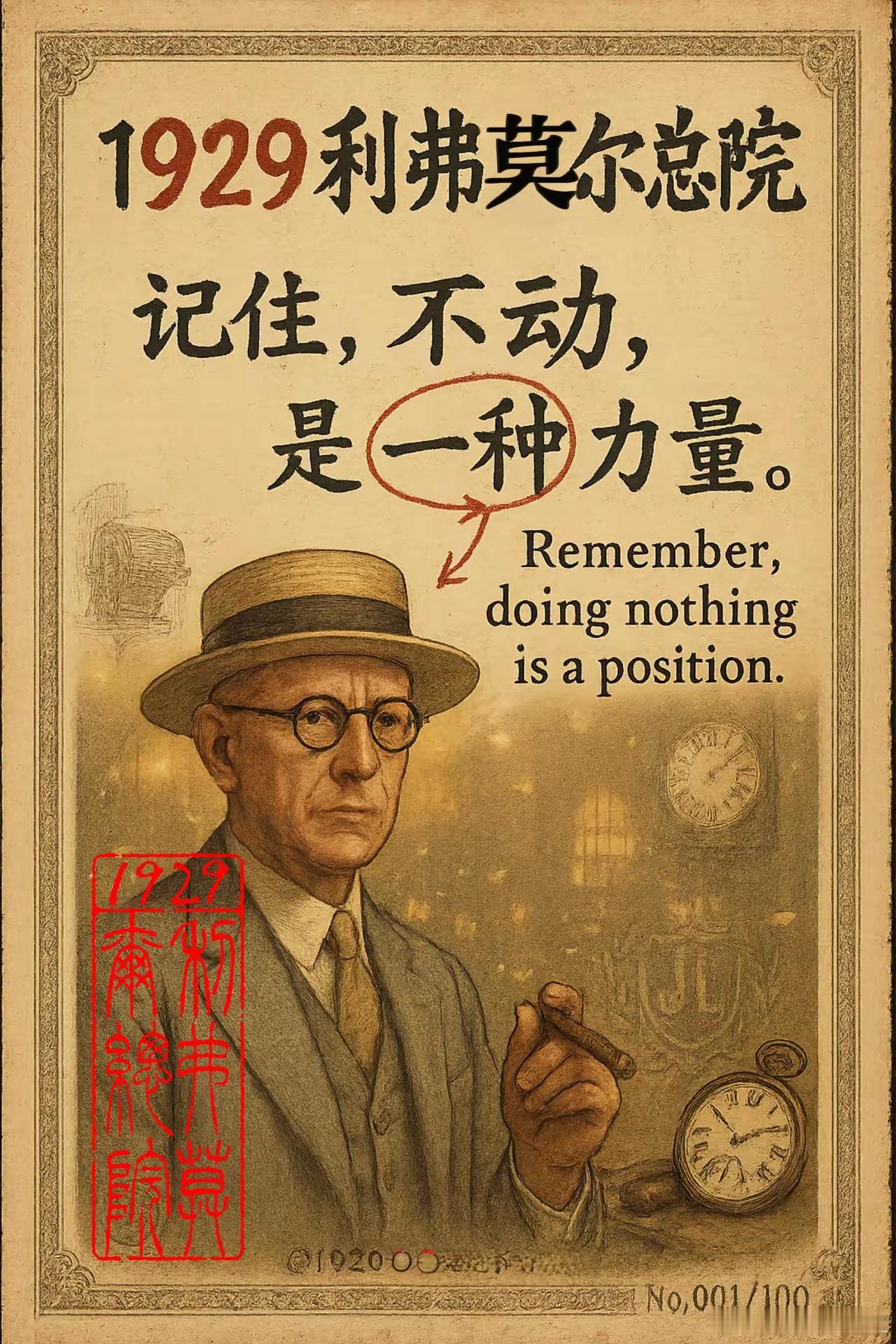 利弗莫尔说:多数人把交易当运动,手脚不停,却忘了真正的力量藏在静止里。市场像狂风,你越挣扎,越容易被卷走;你越安静,越能听见风的呼吸。不动不是放弃,是等待;不是认输,是积蓄。每一次空仓,都是在给心灵充电;每一次忍住冲动,都是在给未来铺路。佛家云“静极则明”,道家说“无为而无不为”。如老僧入定,外界风云变幻,他只管呼吸;如老农春种,不问秋收,只管耕耘。现在,把自选里最想动的那只票的周线图打印出来,贴在墙上。关灯,用手电筒从左到右慢慢扫过,每一根K线停留三秒,感受它的节奏。明早若机会未到,继续等;若机会已来,一击即中。让耐心替你瞄准,让时间替你赚足利润。记住,不动,是一种力量——利弗莫尔——利弗莫尔扑克牌语录精选利弗莫尔 1929利弗莫尔总院