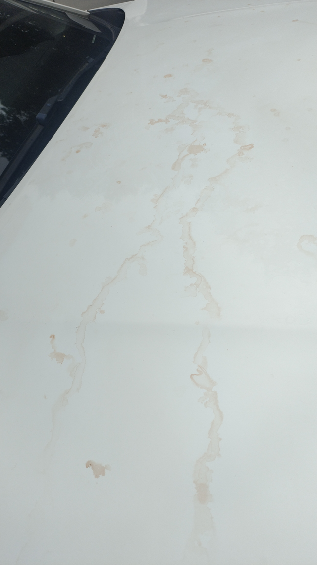 给你们看看什么垃圾车漆 停树下两天就成这样了,而且擦不去,同样停树下别的车什么事没有,就这货成这样,就是垃圾车