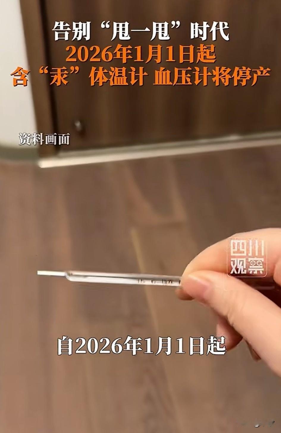 我们一直使用的水银温度计要退出市场了,自2016年1月1日起, 国家开始禁止水银温度计的生产, 也就是说2016年1月1日起, 市面上流通的水银温度计都将是存货, 以后会越卖越少, 现在的温度计五花八门, 有电子温度计,还有体温枪, 这些都不准, 还是老的水银温度计比较靠, 所以说大家可以告别甩一甩的时代了, 国家药品质量监督管理局已经出公告了,家里没有水银温度计, 可要买两根备着了, 家里有小孩的也是必备, 大家都知道水银温度计也有缺点, 那就是它非常容易碎, 里面是有贡的成分, 一旦打碎了要立刻开窗通风, 以免汞中毒, 大家对于这种水银温度计明年停产怎么看? 温度计 水银温度计 医用水银体温计 无规水银温度计 高清度温度计 水银室内温度计
