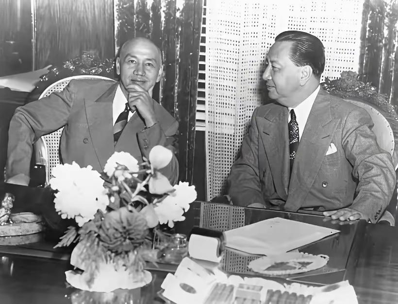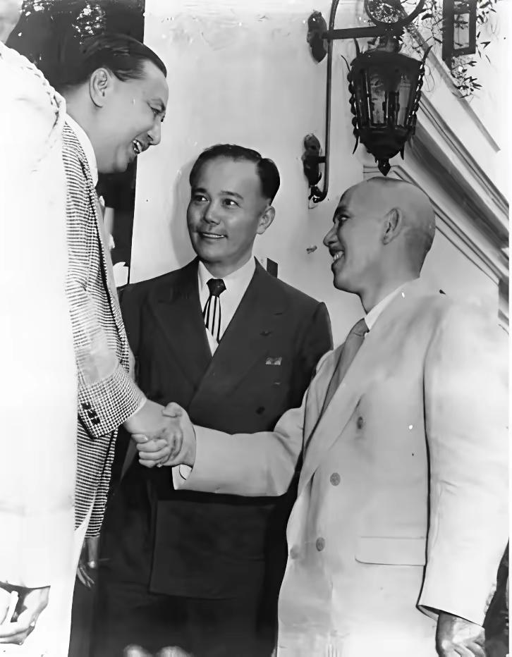 这是一组蒋介石比较罕见的穿西装的照片,我们印象中的他,一般都是穿军装或者长袍马褂。 这是1949年7月,他败退到台湾之后,窜访菲律宾,和菲律宾总统季里诺进行会谈,意图获得菲律宾的支持,甚至有在菲律宾组建流亡政府的打算,但是这一切的谋划,也不过是垂死挣扎罢了。