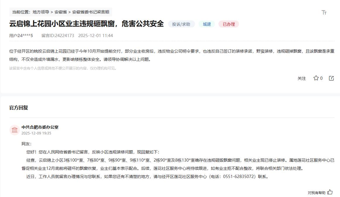 合肥经开区皖投这个盘,装修的问题真不少。前有砸掉承重墙的,现在很多违规砸飘窗。 也说明了,大家买房的对皖投这个盘装修不满意,精装交房的都要砸掉。