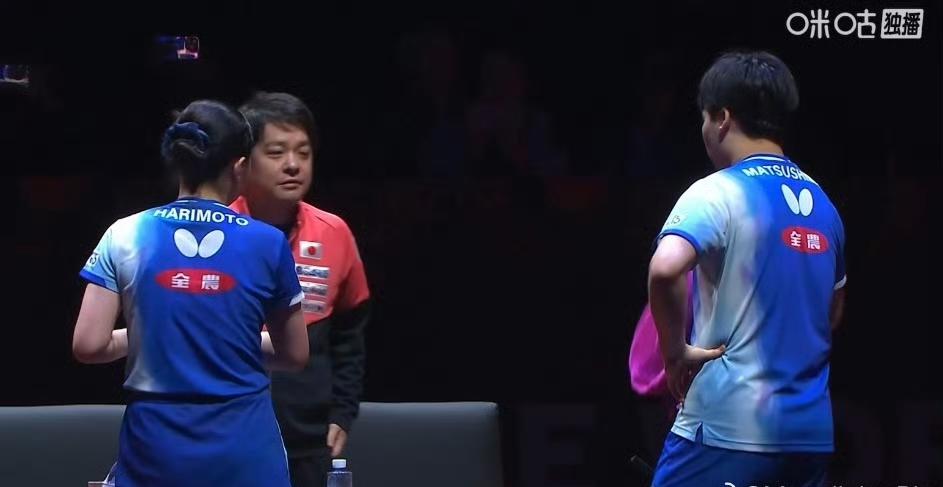 连拿两局11-9[吃瓜群众], 松岛辉空/张本美和🇯🇵领先罗伯勒斯/肖瑶茜🇪🇸 ! 今年总决赛的出场方式好特别,混双搭档面对面走出来,松岛辉空抠着眼屎上场了,对面就是张本美和,两人就像结婚仪式上入场的新郎新娘一样,于是松岛辉空玩世不恭地笑了[奸笑]。 虽然和搭档张本美和没有太多沟通,但两人毕竟实力在,很轻松两人很快拿下两局。 这是2025年香港总决赛混双第一阶段小组循环赛。 日本混双组合的场外指导是男队主教练岸川圣也。 评论区继续吃瓜围观哦[吃瓜群众]。