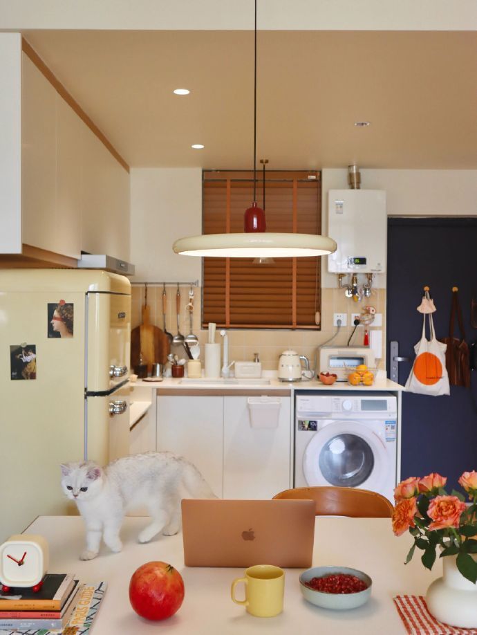 在厨房的慵懒时光,轻松自在,享受美好生活。