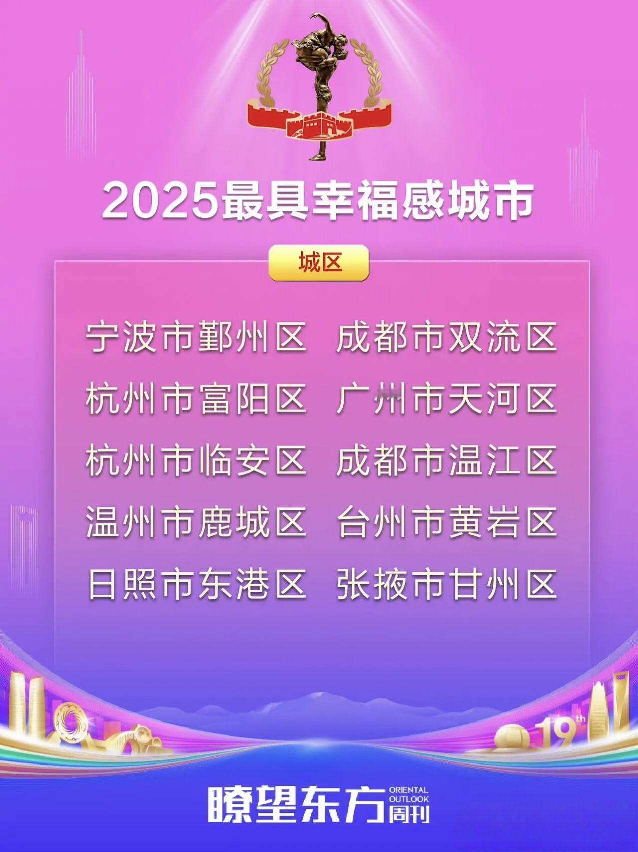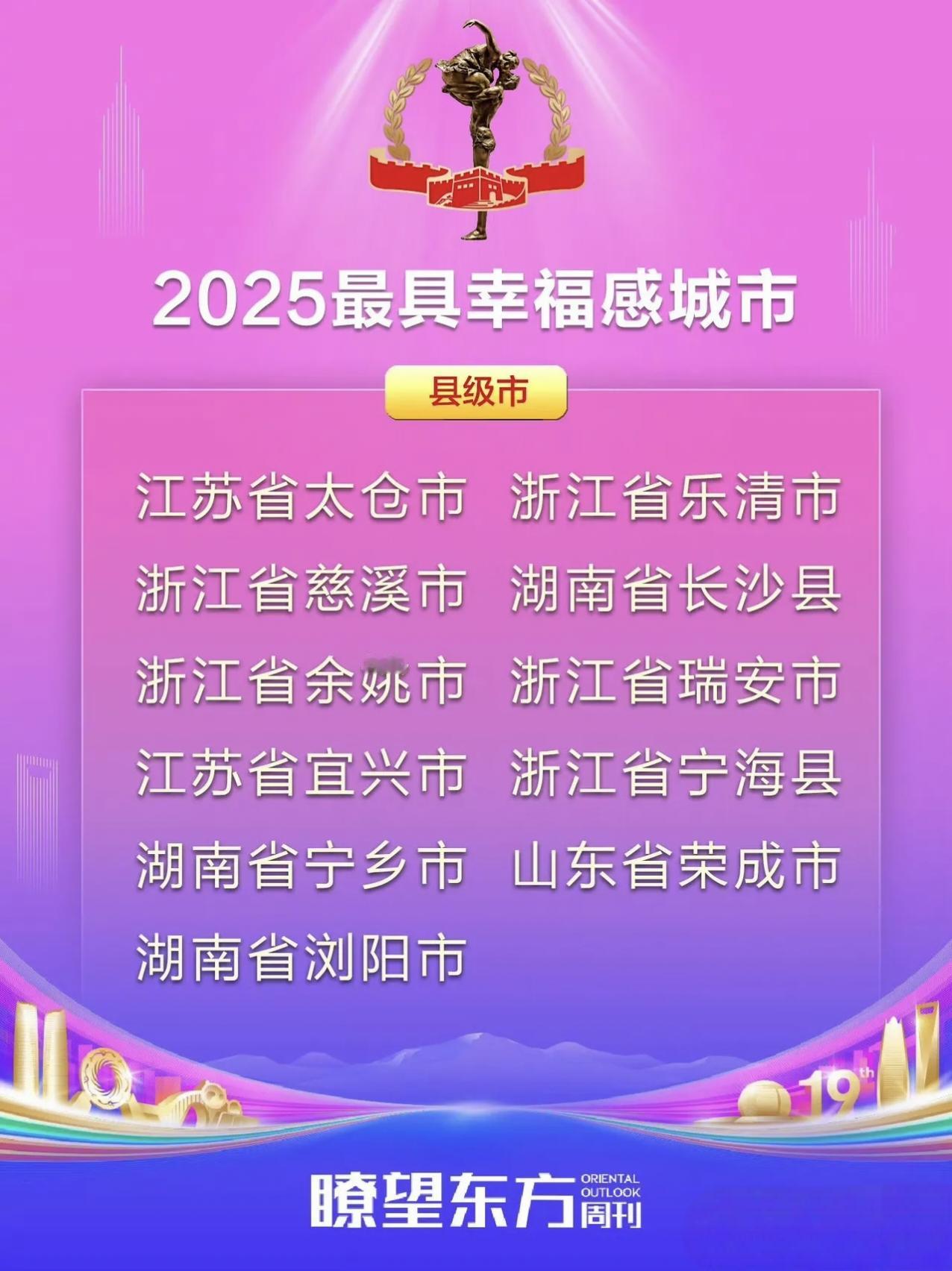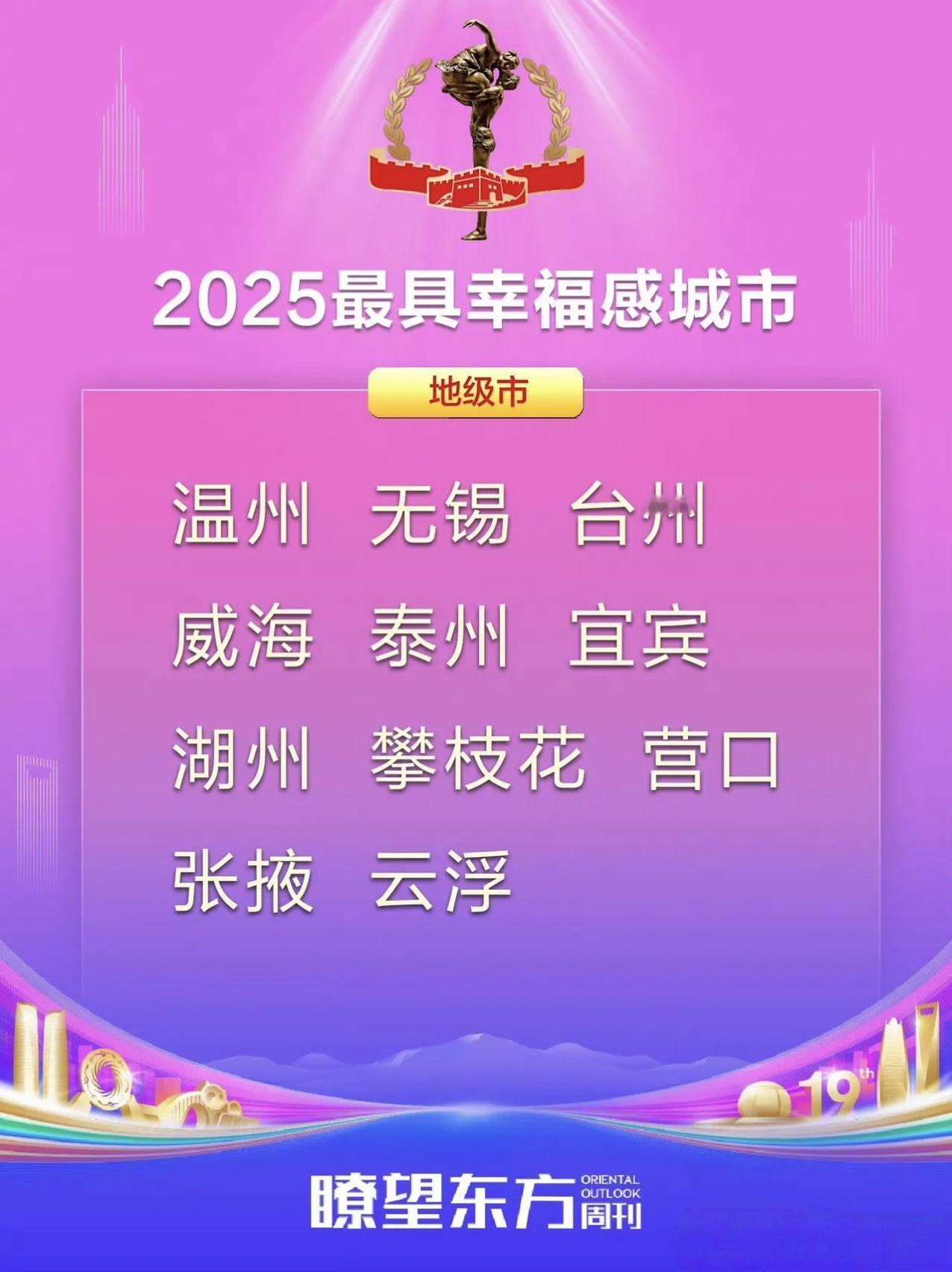 2025最具幸福感城市名单刚出炉!看完直接想打包搬去这些地方定居! 先看省会组:成都又双叒上榜了(毕竟是把“巴适”刻进DNA的城市),杭州宁波南京这些老牌宜居选手也没缺席,连沈阳西宁都杀进来了,看来北方城市的幸福感也在狂飙~ 地级市里藏了不少惊喜:威海的海、无锡的甜、宜宾的酒,光是念名字就觉得舒服;还有攀枝花——这是把阳光焊在生活里了吧? 最绝的是县级市和城区:浙江直接“包场”式上榜(乐清慈溪余姚…这是把幸福感卷成特产了?),成都双流温江、杭州富阳临安,连城区都在比谁更宜居! 咱就是说,这些城市到底有啥魔力?是下班能逛公园喝茶,还是小吃摊比写字楼还密集?反正看完名单,我已经开始搜“巴中租房攻略”了… 那么问题来了,你觉得幸福吗?