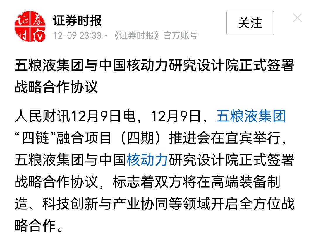 酿酒的和搞核动力研究的合作了?这跨界也太风马牛不相及了吧?五粮液和核动力研究设计院签署战略合作协议,我是不懂的,这两怎么合作?为了生态环境,以后要核动力能源酿酒吗?还是说喝了咱的酒,核动力研究前景不发愁?五粮液