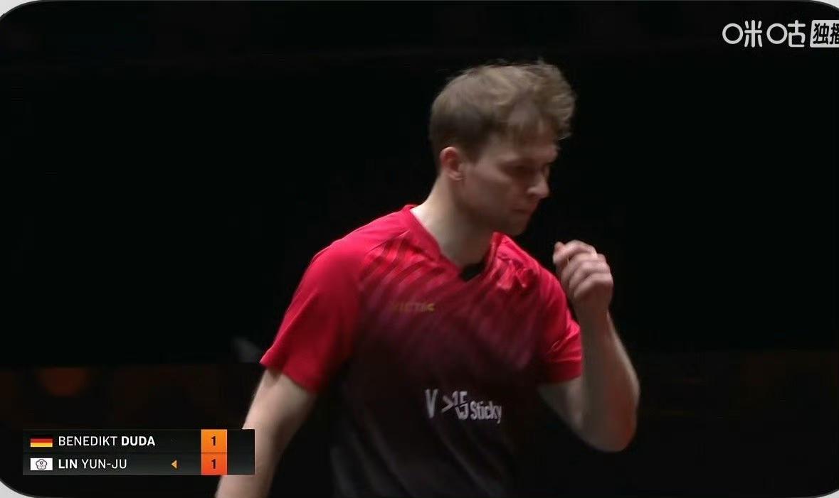 真是打得胆战心惊啊, 第一局林昀儒12-10先胜杜达🇩🇪 ! 这一局杜达的表情和手势好像是非常多了,感觉是有点儿不适应。 这是2025年香港总决赛男单1/8决赛。 哦,第二局这么快就结束了,林昀儒竟然6-11不敌杜达🇩🇪,这一局开局台林直接断电,开局被杜达打成1-9! 杜达和林昀儒无疑是国乒的两大劲,首轮他俩狭路相逢,如果能大战七局,最终无论谁被淘汰,下轮对手都能坐收渔翁之利。 相比较来说,林昀儒更稳定,杜达搏杀能力较强,但林昀儒一年来在单打项目上都没有拿得出手的成绩,看看今天他的运气如何吧。 好!让我们一起隔岸观火[大笑]。