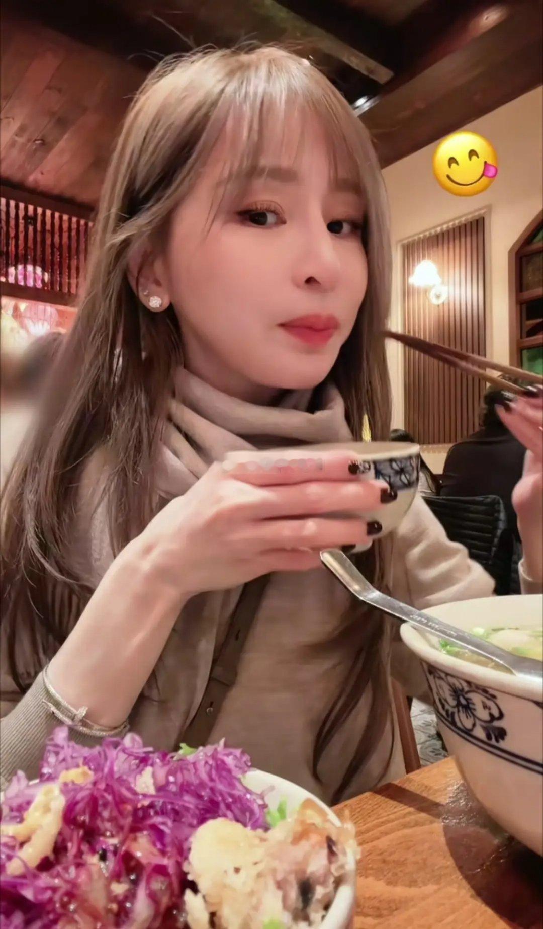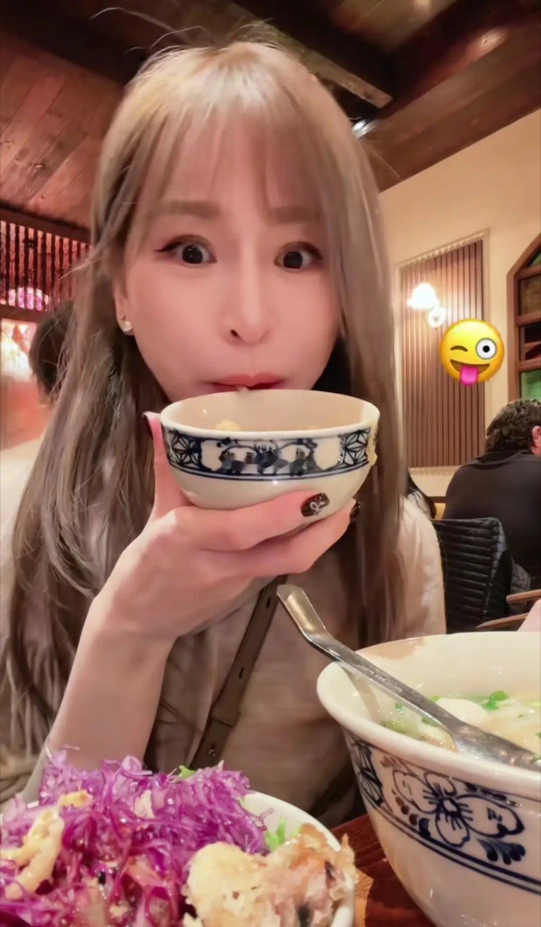 王心凌在纽约吃粉,脖子前垫着纸巾,特别接地气。43岁的她状态超好,看着就像25岁,活力满满呢。