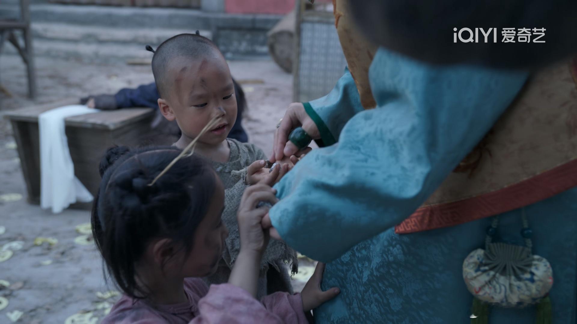 大生意人 里很多细节镜头做得很扎实,最新两集古平原和李钦去南通稳米市,路上遇到俩孩子讨钱,镜头切近了能看到小女孩的头上是插着草的。前面提到南通已经到了卖儿卖女的程度,但是后面的呼应镜头没有做成摆个牌子,写卖孩子的字样,而是设计成插标自售的画面,让两个专门经商的人,去目睹走投无路的人只能卖自己。