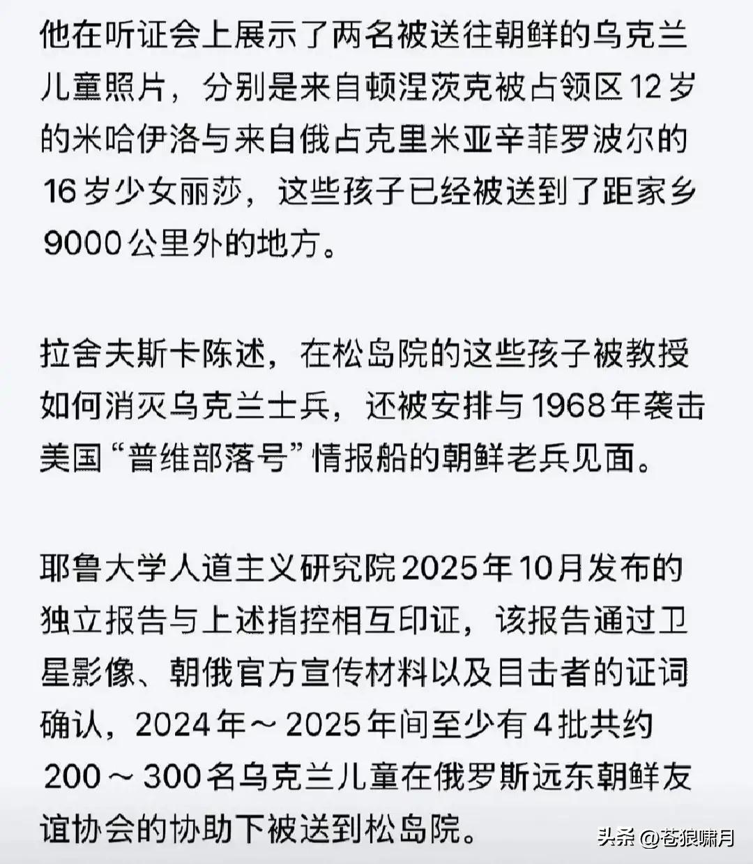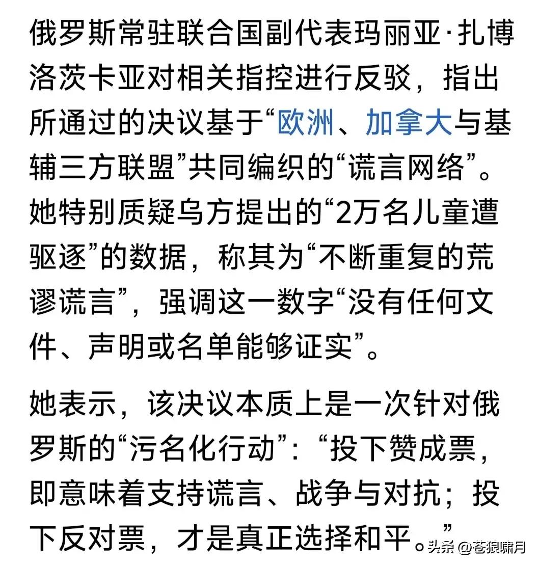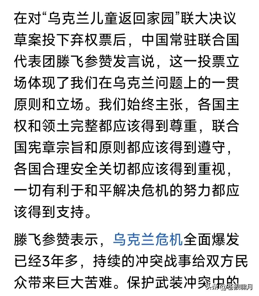 本人想知道:联大会议上,那12个“反对俄归还乌儿童”的国家都是谁?他们是文明标杆?还是被唾弃对象? 联合国大会以91票赞同,12票反对,57票弃权通过决议!谴责将乌儿童强制转移,进行非法集中“收养”,要求俄“立即无条件安全归还”所有乌儿童! 本人想知道的是:投票反对“谴责转移乌儿童”的12国都是谁?这是一些什么国家?这些国家是文明法治国家吗?老百姓生活幸福美满吗?请网友解惑。 世界潮流浩浩荡荡,文明正义必将战胜野蛮邪恶!尽管道路充满险阻,但人心向善向和,人类终将走向美好! …………