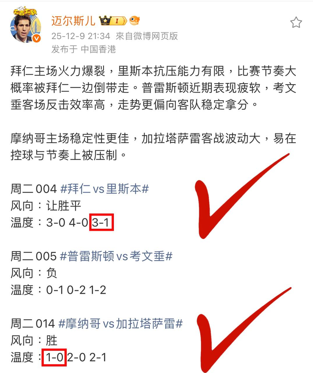 昨晚欧冠拿下两场比分!拜仁3比1里斯本让平打出,摩纳哥1比0加拉塔萨雷成功拿捏。可惜考文垂在 77 分钟左右被普勒斯顿追平,没能完成三场比分大满贯,确实有点可惜。不过我们大家庭里的重头戏才是精华:国际米兰0比1利物浦重锤成功!主任让大家以为利物浦少了萨拉赫就是下狗,这种套路我一眼就看穿,果断带兄弟们去利物浦方向,直接稳稳拿下!今天早场亚冠单关还是会在大家庭里带兄弟们过关,晚上欧冠继续来袭,现在整体状态就差那一厘米的全虹。兄弟们如果觉得主任的菜难啃、味道不对,不妨来我们基地吃吃亚洲菜系,简单粗暴、香味更高!即刻上👇👉《》