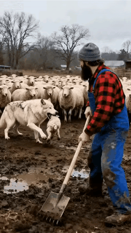 看了这幅动图,有网友发帖称,这是一条混在羊群中的狼,想要叼走一只小羊,被牧羊人发现后,几铁锹就把它打死了! 网友们不理解,看似凶猛的狼,为什么这么窝囊?一点也不敢反抗?不反抗就不反抗,不理解它为什么不逃跑呀?