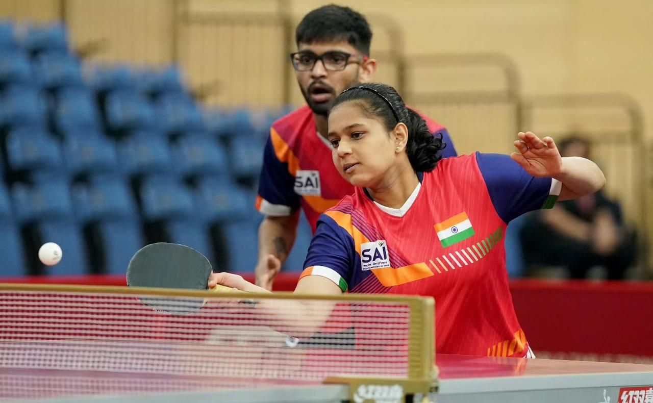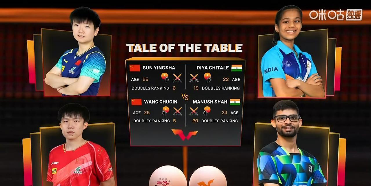 终于轮到王楚钦/孙颖莎🇨🇳上场了[笑哭]! 王楚钦/孙颖莎🇨🇳VS玛纳什·沙/奇塔莱🇮🇳 ! 这是2025年WTT香港总决赛混双第一阶段小组循环赛。 今天王楚钦一天双赛有点忙,刚才陈熠七局鏖战朱雨玲获胜拖了时间。 成都、香港连轴转的王楚钦体能怎样不得而知,还好混双项目是五局三胜制。 这一场莎头组合需要速战速决,对手是陌生的印度组合,楚钦、莎莎加油[奋斗]!