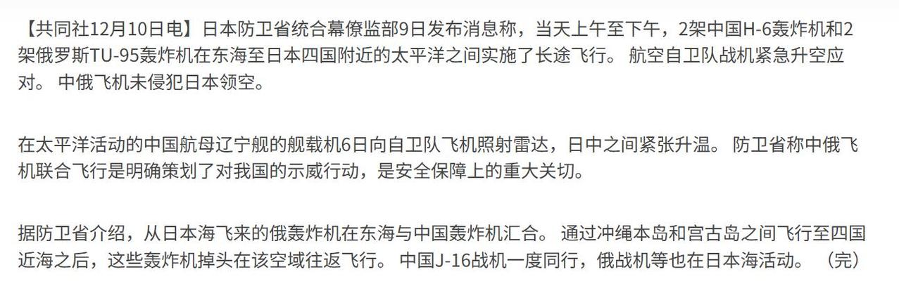 史诗级反噬!高市早苗5条坏消息炸锅,中俄巡航+稀土反制打懵日本! 当中俄联合巡航创下“双首次”震撼西太平洋,当稀土审批卡断日本产业链命脉,高市早苗的对华挑衅,终究换来了全方位反噬的“苦果套餐”! 军事上遭中俄立体震慑,经济上被稀土捏住七寸,政治上遇逼宫辞职,外交上成孤家寡人,这场“赌国运”的挑衅,早已注定满盘皆输。 据环球网等媒体报道,中俄两军按年度计划开展联合空中战略巡航,解放军轰6K、歼16与俄军图95、苏30编队,首次进入四国外海空域,且与解放军航母太平洋部署形成呼应。 日本炒作“核威慑”纯属心虚,而高市早苗更是连遭五重打击:稀土出口申请一月未批,15年前的供应危机阴影重现;涉华言论被指违宪,在野党直接逼宫辞职; 支持率暴跌6.2%,半数民众担忧中日关系;美国作壁上观、澳方沉默以对,外交彻底孤立;王毅外长强硬警告,中国忍耐已达极限。 这一系列反噬,本质是日本误判形势的必然。稀土领域92%的冶炼提纯优势,让中国掌握绝对主动权,日本所谓“去依赖”不过自欺欺人; 中俄战略协作的硬实力,绝非单边挑衅能撼动;而违背和平宪法、触碰台湾红线的危险操作,既失民心也遭国际孤立。 高市早苗的困境证明:当今世界,挑衅大国核心利益没有好下场,依附他国搞对抗终将被抛弃。日本若仍执迷不悟,等待它的只会是更沉重的反制代价。