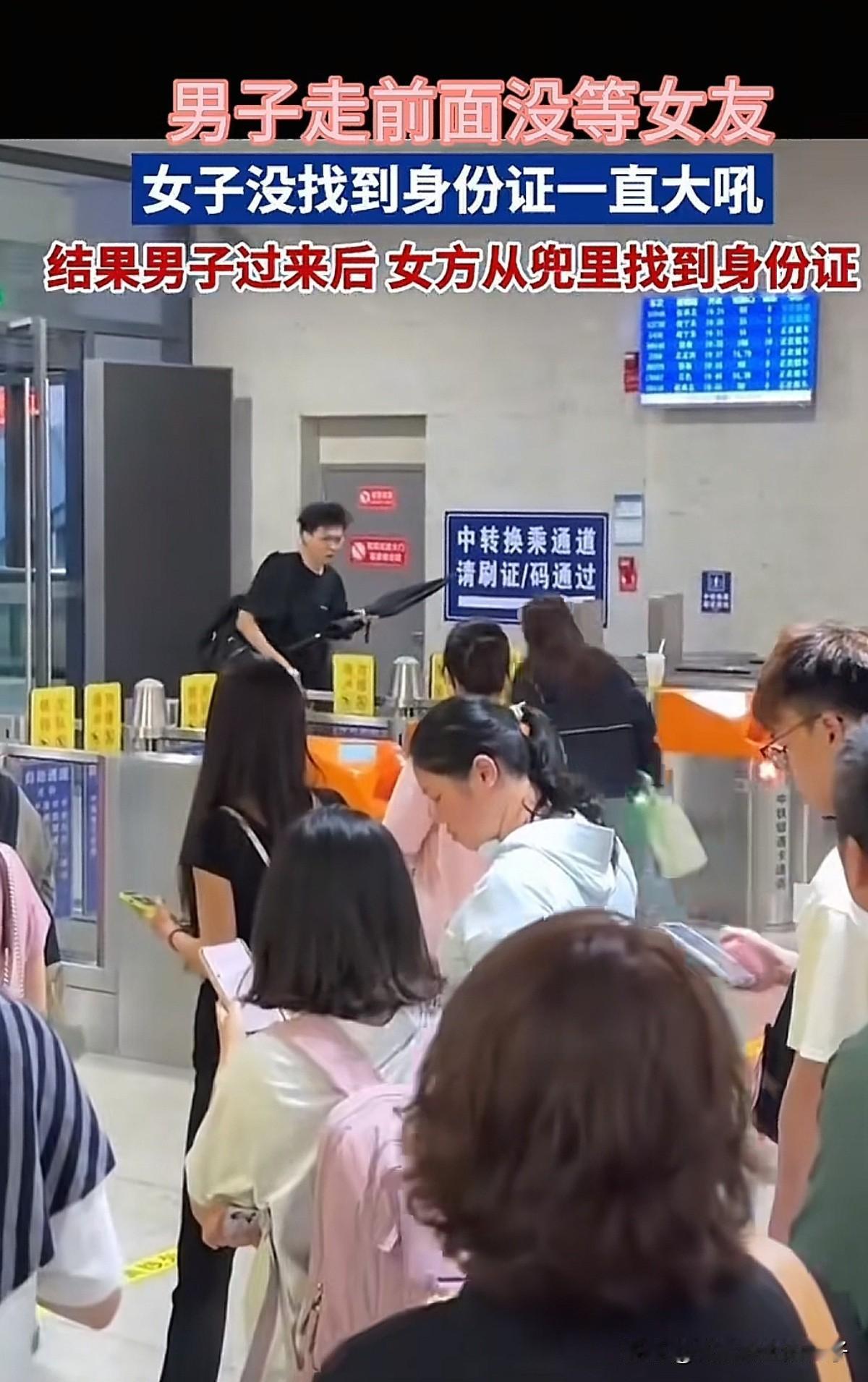 情绪稳定有多重要!女子出检票口找不到身份证,对着已经出站的男友歇斯底里的大叫:身份证呢?回过头的男生一脸懵,虽然不知道女友怎么生气了,但还是在口袋里翻找起来。 找了一会儿也没找到,加上周围不少的乘客都在盯着他们,满脸尴尬的男孩提醒女生,身份证好像在她的身上,女孩一模果然在自己口袋里。 女孩却没有为自己的行为向男生道歉,反而气鼓鼓的独自往前走了,男生只得抱着行李赶紧跟上去。 说实话这种性格的人,做朋友都感觉好累,更别说要一起生活一辈子! 行李全是男的拿着,女的就拿杯奶茶在后面慢吞吞的,自己身份证找不到了就吼别人,估计平时出问题了也是责怪别人的那种,从来不会觉得自己有问题。 唉,看着就心疼这个男生!