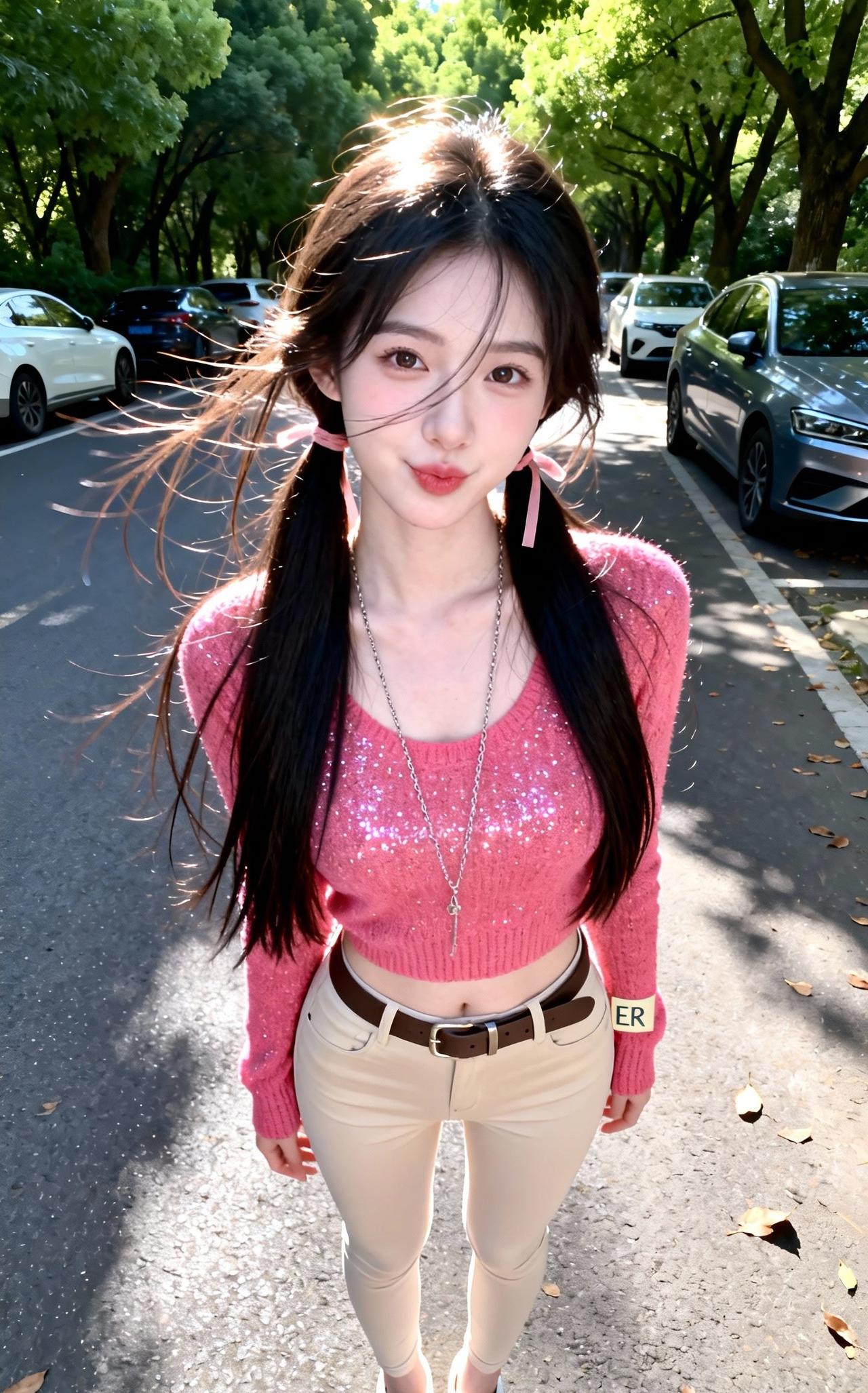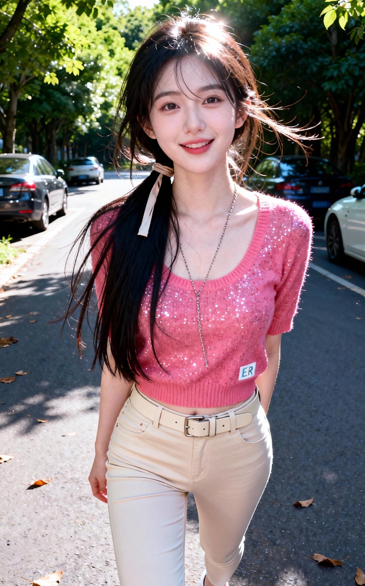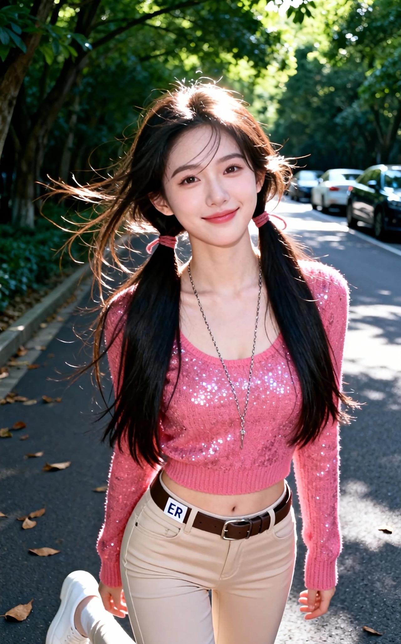 红裙衬着舒展的肩线,笑意落进眼底时,连暗调背景都漫开了明艳的温度。超级迷人美女