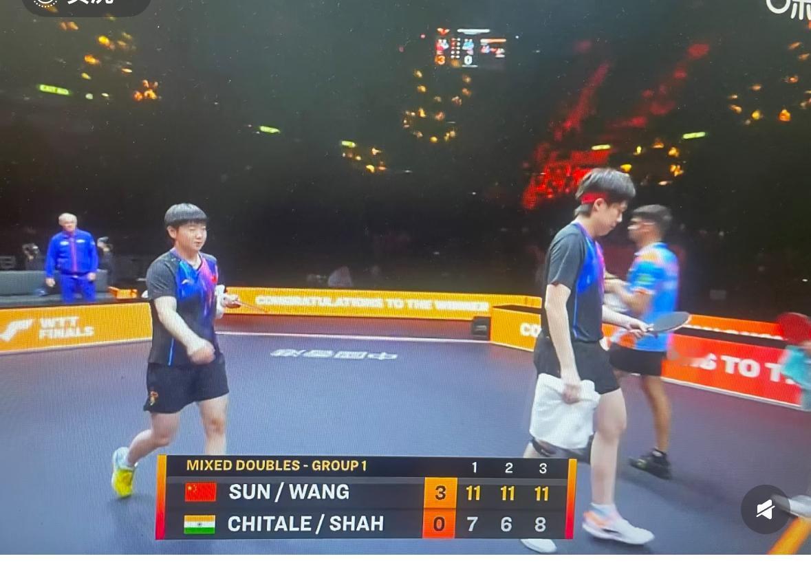 WTT香港总决赛莎头组合首战告捷赛后采访:体力还在调整 12月10日, WTT香港总决赛开赛首日, 孙颖莎/王楚钦3:0玛纳什沙/奇塔莱 光速下班! 孙颖莎赛后采访中表示: 今天发挥正常, 也是第一场比赛, 还是对场馆的适应, 对印度这一对组合也没有交手过, 他们也非常有特点, 进入到总决赛的选手, 他们都有各自的实力! 我们一直提醒对方, 保持专注和调动, 因为晚上王楚钦还有一场单打, 时间隔的很近, 我们都保持专注, 希望比赛不要拖得太久! 刚从成都过来, 精力体力还在不断调整, 最近的比赛都是连轴转, 时间比较紧, 但大家都一样, 还是以一个积极的心态, 来迎接接下来的比赛! 会以一个最好的状态给大家呈现 最精彩的比赛!” 孙颖莎/王楚钦的实力太强, 配合默契, 莎莎也非常替王楚钦着想, 尽快结束混双比赛, 考虑到王楚钦还有一场男单比赛, 七局四胜制, 比较消耗体力, 采访都是莎莎独自完成的…… 王楚钦晚上19:20 对战松岛辉空, 一场硬仗,王楚钦加油!