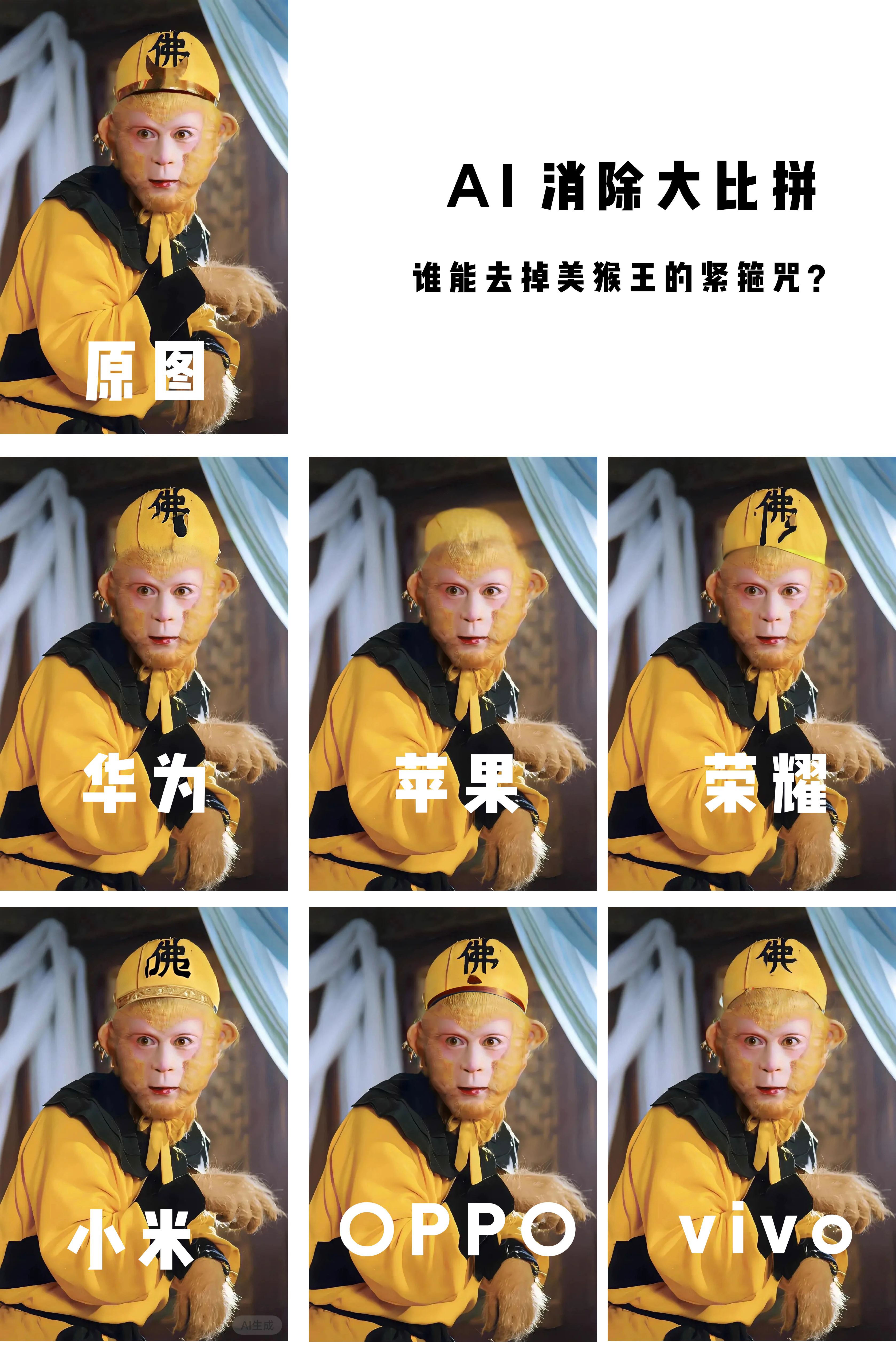 AI消除大比拼,谁能摘掉美猴王的紧箍咒?华米OV苹耀 你觉得哪个还原的最好?