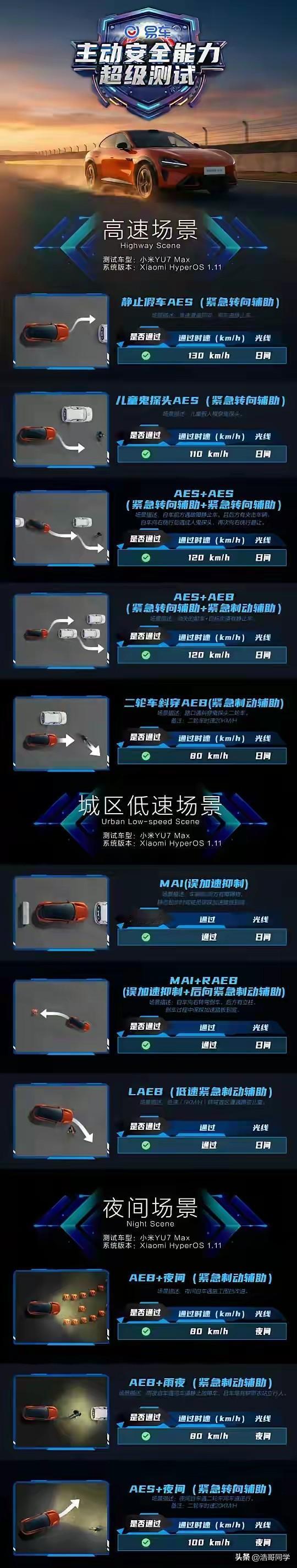小米汽车推送了1.11.0版本后,主动安全能力取得了一个质的飞跃,易车对小米YU7 Max版本进行了全方位的主动安全测试,包括高速场景的5项测试,城区低速场景的3项测试,夜间场景的3项测试,而且一共11项测试都顺利通关。可以说这样的主动安全测试是非常有参考价值的,基本上已经涵盖了车主用场的所有场景。不过,现阶段的智能辅助驾驶仍然是L2级别,车主还是要专注于驾驶,第一责任人还是车主本身,智能辅助驾驶只是帮助车主缓解驾驶的疲劳。科技能够改变生活,可以服务于人类。小米汽车SU7 小米汽车品质 小米汽车犹豫期 小米汽车危害 小米汽车s7 小米汽车FU7 小米汽车u7 小米新车评价