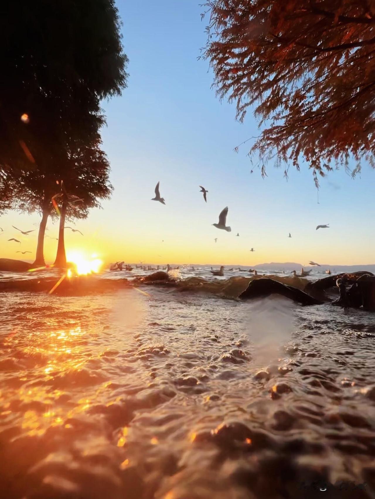 救命!昆明的海鸥日落直接治愈我了🌅 冬天的昆明也太浪漫了吧! 滇池被落日染成橘子海 海鸥迎着余晖展翅,掠过水面溅起金光✨ 穿梭在水杉林里,鸣叫声混着晚风,超治愈! 原来这就是生命最鲜活的样子啊~ 不是轰轰烈烈,是海鸥振翅的自由, 是落日漫洒的温柔,是自然撞个满怀的热烈 有人说没看到海鸥,大概率是找错地方啦! 认准捞鱼河湿地公园,准没错~ 真心建议冬天都去昆明走走, 不用挤人潮,就静静地看一场海鸥日落, 所有的疲惫都被这温柔的画面化解了。 这才是冬天该有的浪漫啊! 昆明海鸥季