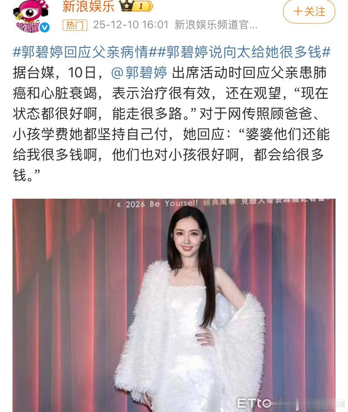 郭碧婷向太有给很多钱婆婆给很多钱。