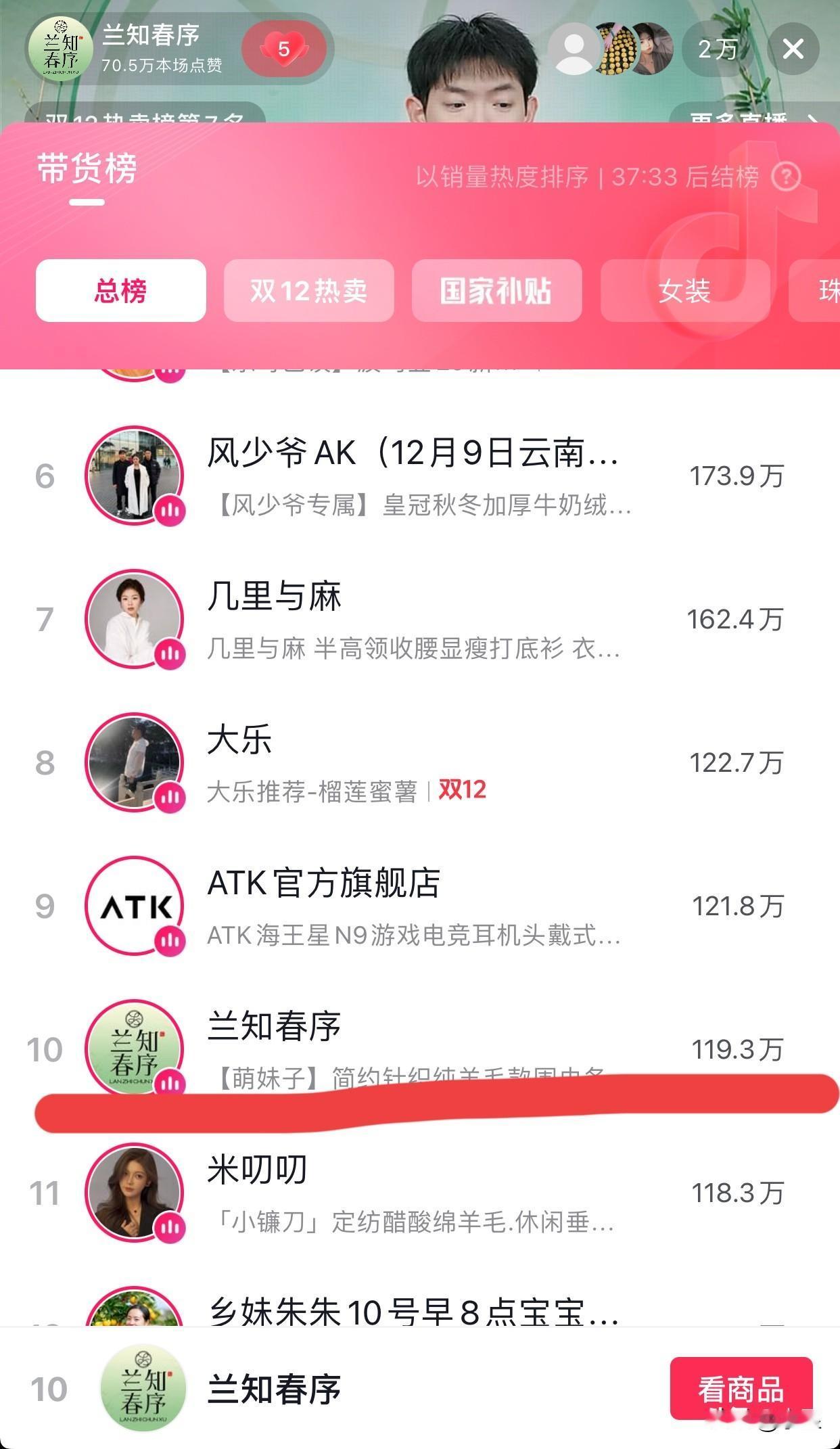 打开兰知春序发现传熙正在卖锅 本来以为今天董宇辉在直播 会吸引走一大批粉丝去与辉同行 没想到小传熙这里依然有2万人 而且还是抖音带货总榜第10名 晚上8点的黄金时段能有这成绩 小兰真是越来越厉害了 说明路人盘非常稳 传熙介绍的这款锅30天试用 他跟大家说要懂得拒绝 如果确实不好用就退 有运费险,千万别不好意思 是啊,既然谈了这么好的机制给大家 要是真不满意,就别委屈自己 喜欢在小辉和小兰直播间购物 最主要的原因就是售后政策特别好 这锅竟然能谈下来30天无理由退换 那还有啥不放心的[耶]
