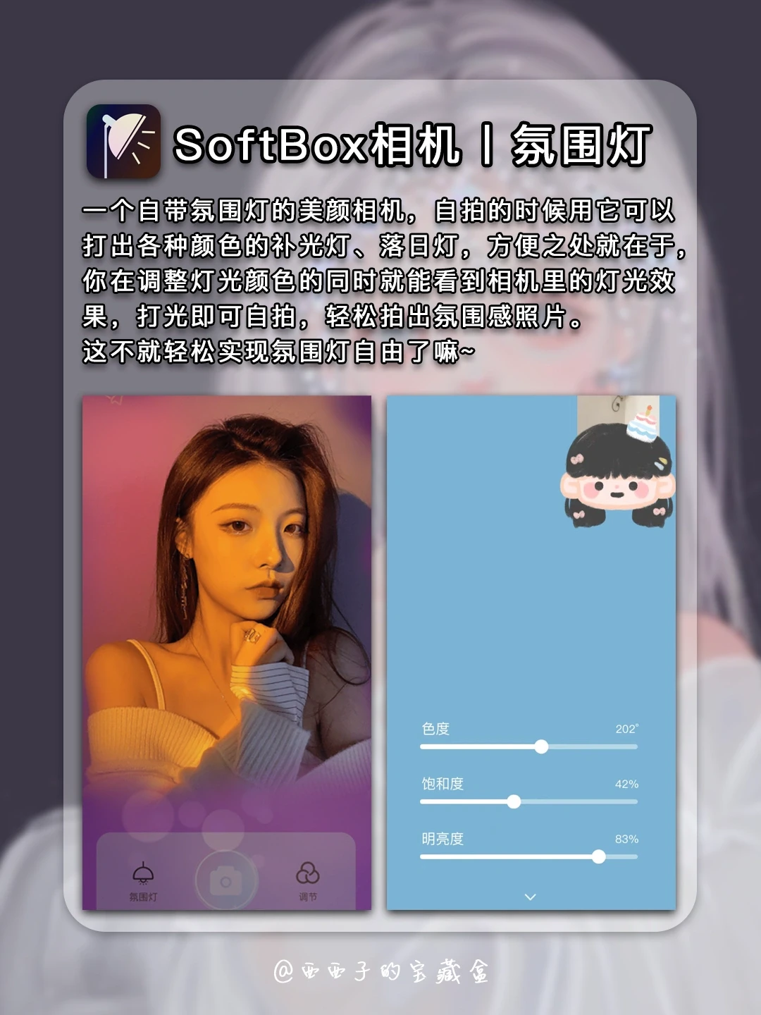 鲜为人知但敲级宝藏!! · 👗WanaTry丨时尚穿搭 🌖HiiiWidget丨动态小组件 🌈Color Max丨配色灵感 😪小睡眠丨白噪音 · 🌤光影修图丨氛围修图 📷SoftBox相机丨氛围灯 🖼️拿铁相框丨照片小组件 👫一伴丨小众社交