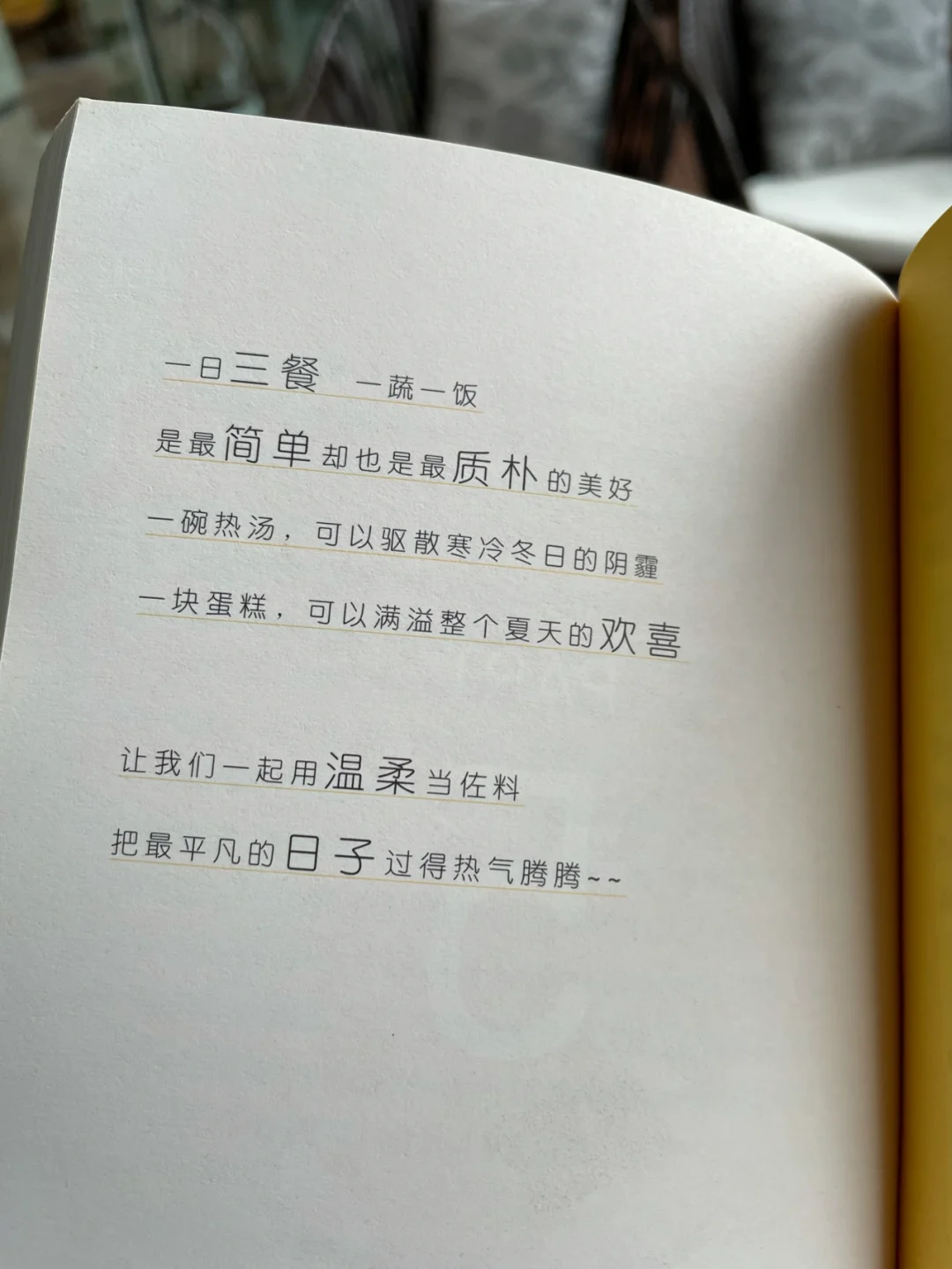 4. 一日三餐,一蔬一饭,是最简单却也是最质朴的美好。一碗热汤可以驱散寒冷冬日的阴霾,一块蛋糕可以满溢整个夏天的欢喜,让我们一起用温柔当佐料,把最平凡的日子过的热气腾腾