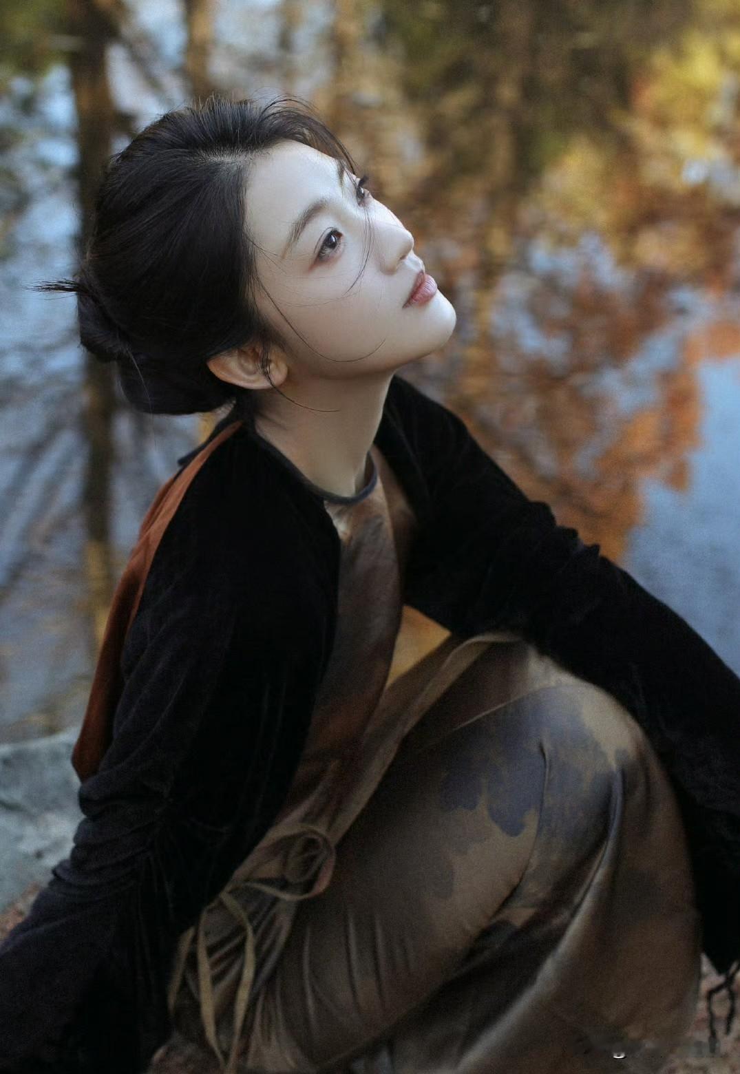 这姑娘穿着晚礼服站在栏杆旁,真优雅!