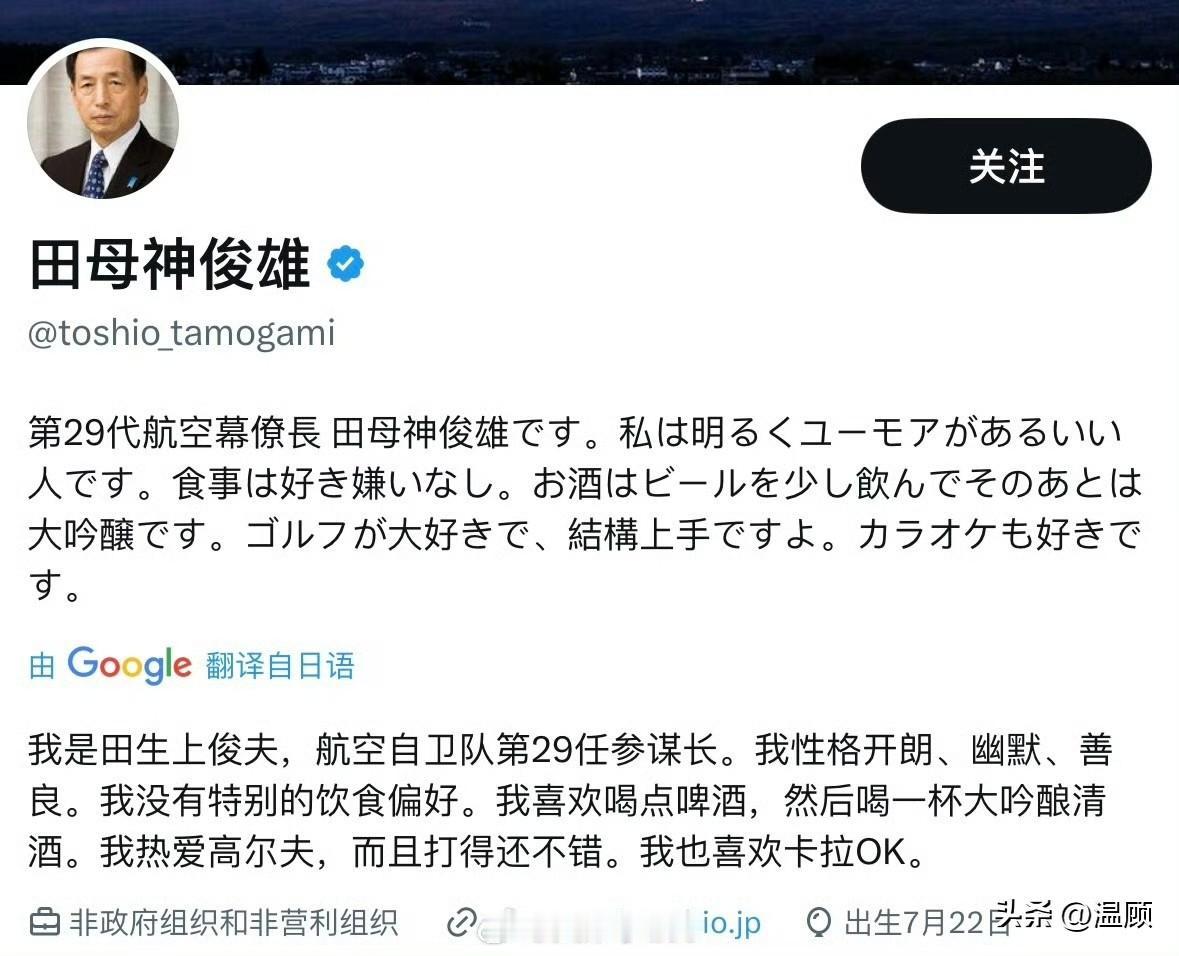 这个性格开朗、幽默、善良,喜欢喝点酒的航空自卫队参谋长这么猛吗?不会是啤酒+大吟酿清酒喝多了吧?