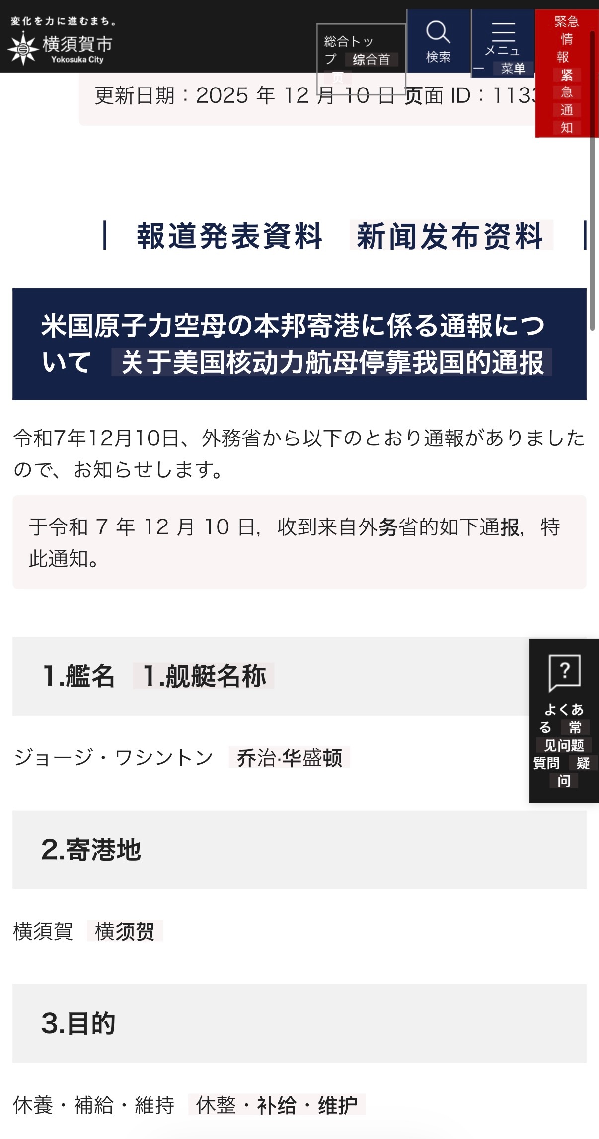 🔻美军横须贺基地官方账号说:“こんにちは〜😄無事にジョージが同盟国やパートナ
