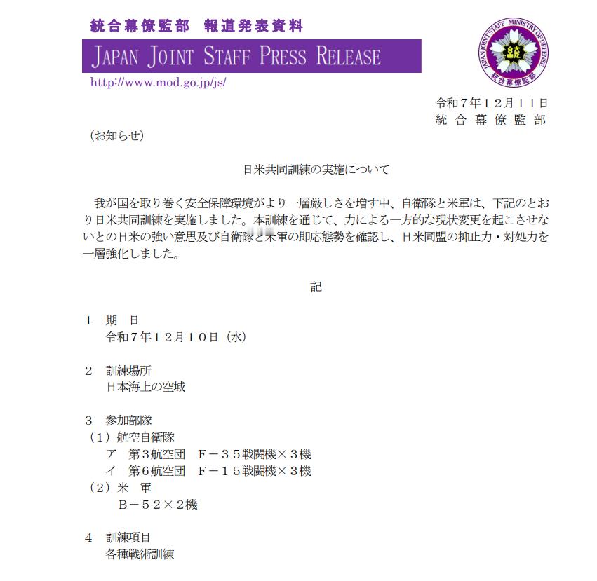 🔻日本防卫省宣称:“在我国周边安全环境日益严峻的形势下,自卫队与美军按以下方式进行了演练。通过此次训练,确认了日美双方遏制单方面武力改变现状的坚定决心以及自卫队与美军的快速反应态势,进一步强化了日米同盟的威慑与应对能力。”🔻结果一看演练地点:“日本海上の空域”。🔻“空自和米军,你出来,你根本没在西太,你躲哪去啦,啊?”中方录音一出日本有人看不下去了日本求锤得锤热点现场海外新鲜事