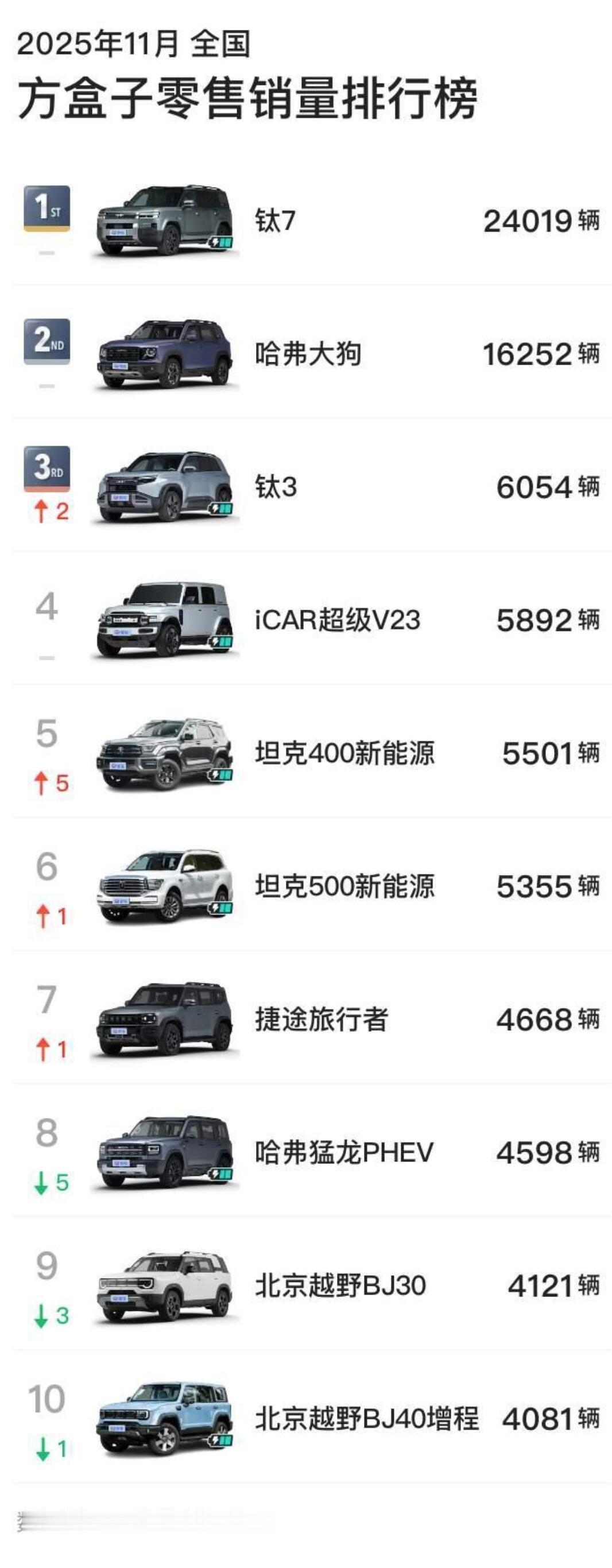 11月汽车销量解读 11月份有两台车的销量让我比较惊讶,一个是钛7,一个是大狗。钛7在9月份上市10月就破了20000台,11月破24000台。大狗7月销量才8000多台,8月开始就跟开了挂一样月月15000台以上。