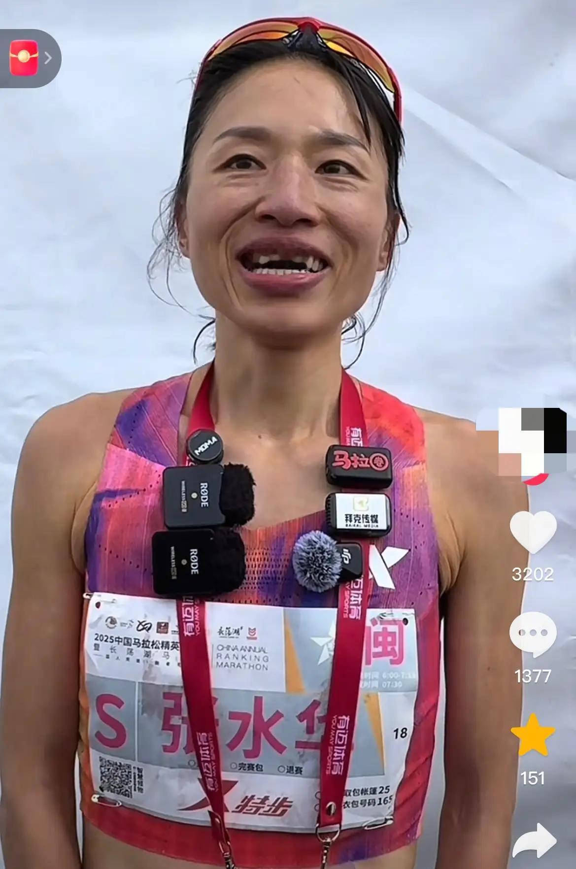 仔细看张水华这张照片,大家发现一个细节没有,不是她的嘴巴大,而是她很明显看上去比同龄人显老。在网上查了一下张水华是90后,今年刚刚34岁,按理说这个年纪的女人状态应该还是不错的。 其实她挣得奖金拿出一部分给同事朋友买点小礼物不至于弄的这么僵。 别操心了,人家能轻轻松松跑完马拉松,还能轻松得冠,身体底子极度棒了。🍀🍀🍀 脸上的皱纹是体脂低的表现,这种消耗大的运动,首先消耗的就是脂肪,体脂低了,皱纹就特别明显,加上风吹日晒,他们特别显苍老。 人家未开美颜功能!跑第一名的人心肝脾肺肾及一切功能都是最佳。 老百姓不需要会跑步的护士,更需要会扎针、会急救、专业严谨、态度温和的护士。