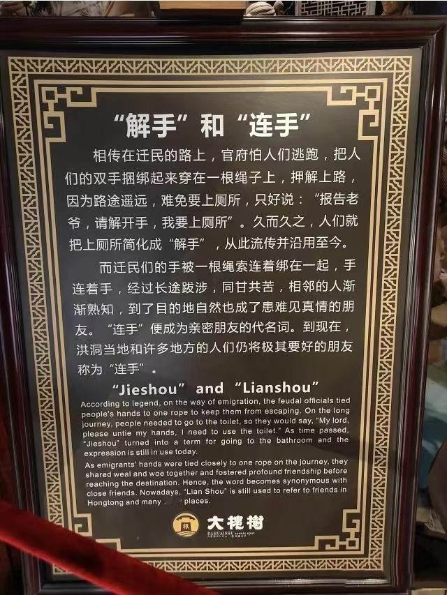 挖,接着挖词,越挖越惊讶! 我小时候,亲人朋友和邻居们都说上厕所说是‘解手’,我很纳闷,上厕所怎么和‘解手’什么区别哩?后来明白了就是过去在清军入关后,给人的手都绑住去,预防逃跑和叛乱,想上厕所怎么办,就得给管理的小头目汇报‘解开双手去尿尿’,自然就成为了解手代表是去厕所!目前河南,安徽,湖北等南方的人目前还在使用‘解手’! “汉衫”是满清对汉人内衣服饰的简称,清代推行 “剃发易服” 政策,汉人日常需遵行满式衣冠(如长袍马褂、旗装),传统‘汉服’被丢弃,仅仅里面的内衣也就是‘汉衫’保留离开下来,慢慢的变成了‘汗衫’! ‘剃头’,在满清之前,“剃头” 的核心表述是理发“栉发”,另外满清之前除特殊情况不剪发,‘生发父母恩’,满清之后开始了‘剃头’,目前我们经常说去剃头,这是满清留下的词汇! ‘萨其马’,‘嬷嬷’,‘格格 / 阿哥’,‘埋汰’,‘磨叽’,‘老嘎达’,‘旗服’,‘马褂’等等,看来很多方言已经进入了我们日常,如今推翻大清国都百年有余了,但是我们还没有忘记这些词汇!