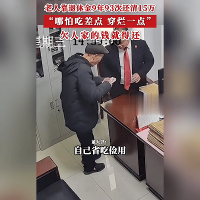80岁老人9年2个月93次还款:他用1700元月薪,在皱纹里刻出"信义"二字! 养殖场倒闭后的"硬币长征" 西安市董大爷71岁那年,因养殖业亏损背上10余万元债务。他每月雷打不动揣着1700元现金袋走进法院:"法官,这是这个月的钱。"9年零2个月,93次还款记录连起来,比养殖场倒下的栅栏更有力量。 牙缝里抠出的尊严 老人的记账本写着: 早餐,馒头配白开水(省2元) 代步,自行车骑坏3辆(舍不得换电动车) 降压药:掰成两半吃(省5毛钱) 邻居王阿姨抹泪说:"他连新衣服都舍不得买,还钱比吃饭还重要。" 时光沉淀的"诚信密码" 执行法官小李记得: 1、暴雨天老人拄拐杖跋涉3公里,鞋里倒出半碗水 2、春节前特意包了饺子送来:"你们过年还值班,辛苦了" 3、最后一次还款时,他摩挲着结清证明:"这比领退休金还高兴" 你身边有哪些"平凡的守信人"?评论区分享他们的故事!点赞传递温暖,转发让诚信之光点亮更多角落。 80岁老人9年93次还款书写诚信 (本文依据法院执行记录/邻居采访整理)