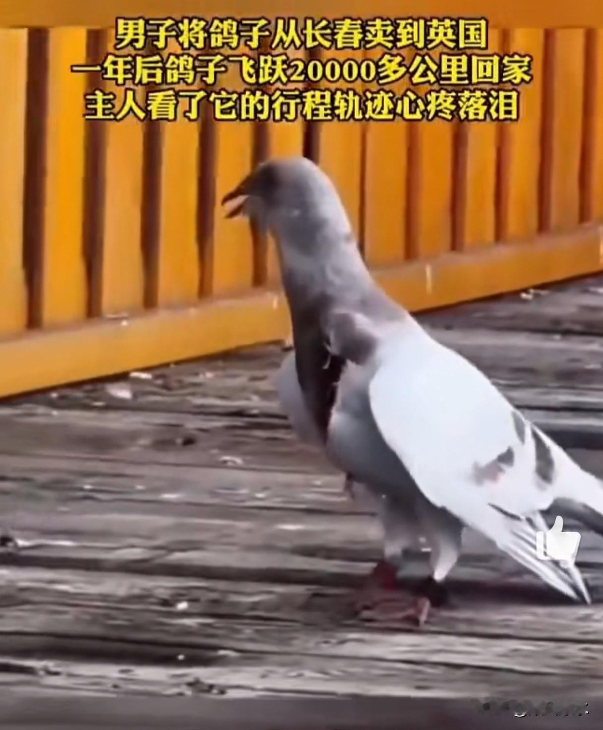 长春一男子把鸽子卖到英国,一年后这鸽子竟飞了两万多公里回家。主人看着它的行程轨迹,心疼得落泪。 鸽子认家本能强,哪怕跨洋也想回熟悉的地方,让人看到动物的坚韧与深情,也勾起主人对它的牵挂。 距离挡不住归心,爱与本能能穿越千山万水。 鸽子用万里归程告诉我们——心之所系,再远的路也能走回,这份执着最动人!