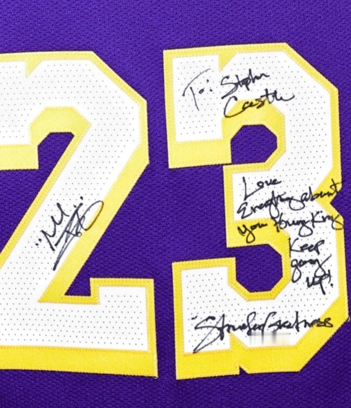 赛后卡斯尔收到了老詹的签名球衣:喜欢你的一切,年轻的国王,继续前进!