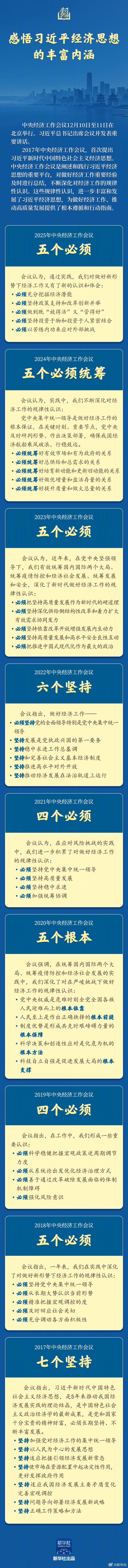#学习新语#【#感悟习近平经济思想的丰富内涵#】中央经济工作会议12月10日至11日在北京举行。习近平总书记出席会议并发表重要讲话。中央经济工作会议是阐述和践行习近平经济思想的重要平台,对做好经济工作重要经验及时进行总结,不断深化对经济工作的规律性认识。这些规律性认识,进一步丰富和发展了习近平经济思想,为做好经济工作、推动高质量发展提供了根本遵循和行动指南。