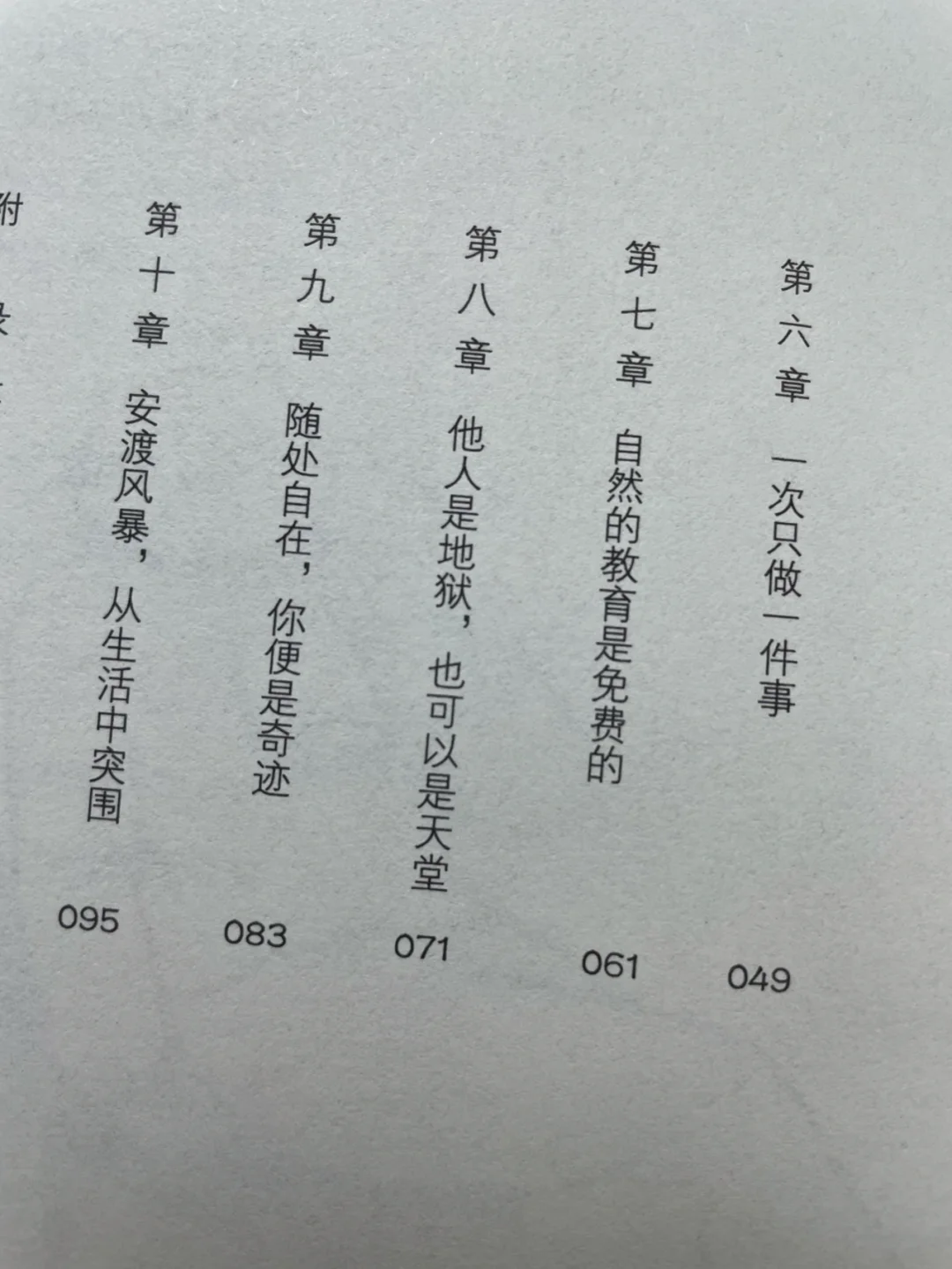 书本分为两部分,前半部分中文后半部分英文版,虽然字数不多,但可能就是这些简短文字可以改变很多人一生的命运,人的一生都在追求所谓的快乐,但真实的快乐一直在我们的内心,不快乐也是我们头脑想象出来的,好好享受当下,才能与烦恼断舍离