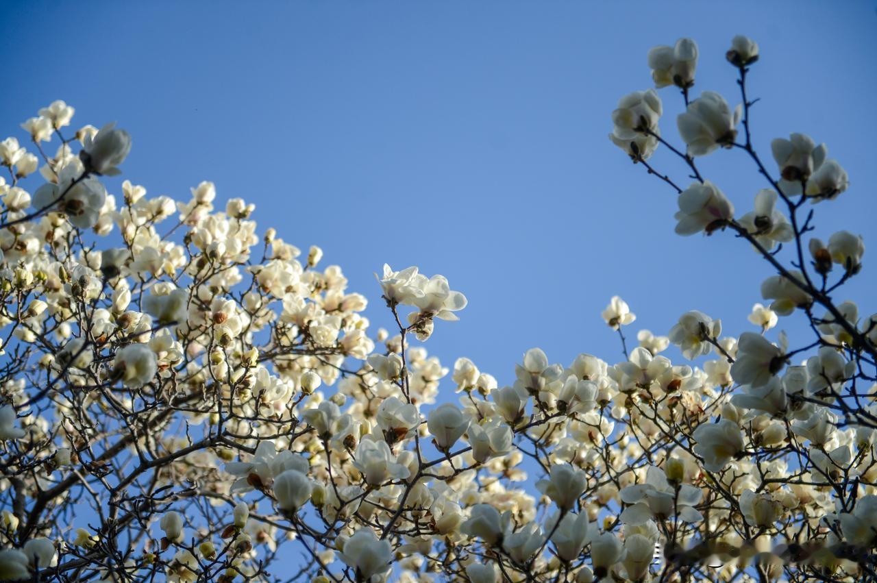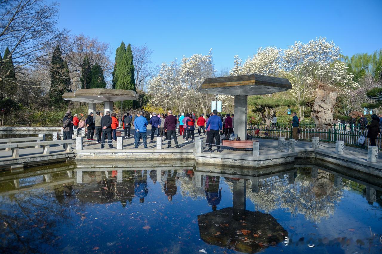 明日即是春分节气,百花公园内的数百株玉兰花正进入盛花期,不少游客前来打卡拍照,美丽花朵在枝头绽放,在蓝天的映衬下更加鲜艳夺目。据了解,济南百花公园的玉兰花,无论树体还是数量,在济南都是首屈一指的,1989年建园就开始栽植,部分树龄超过40年。