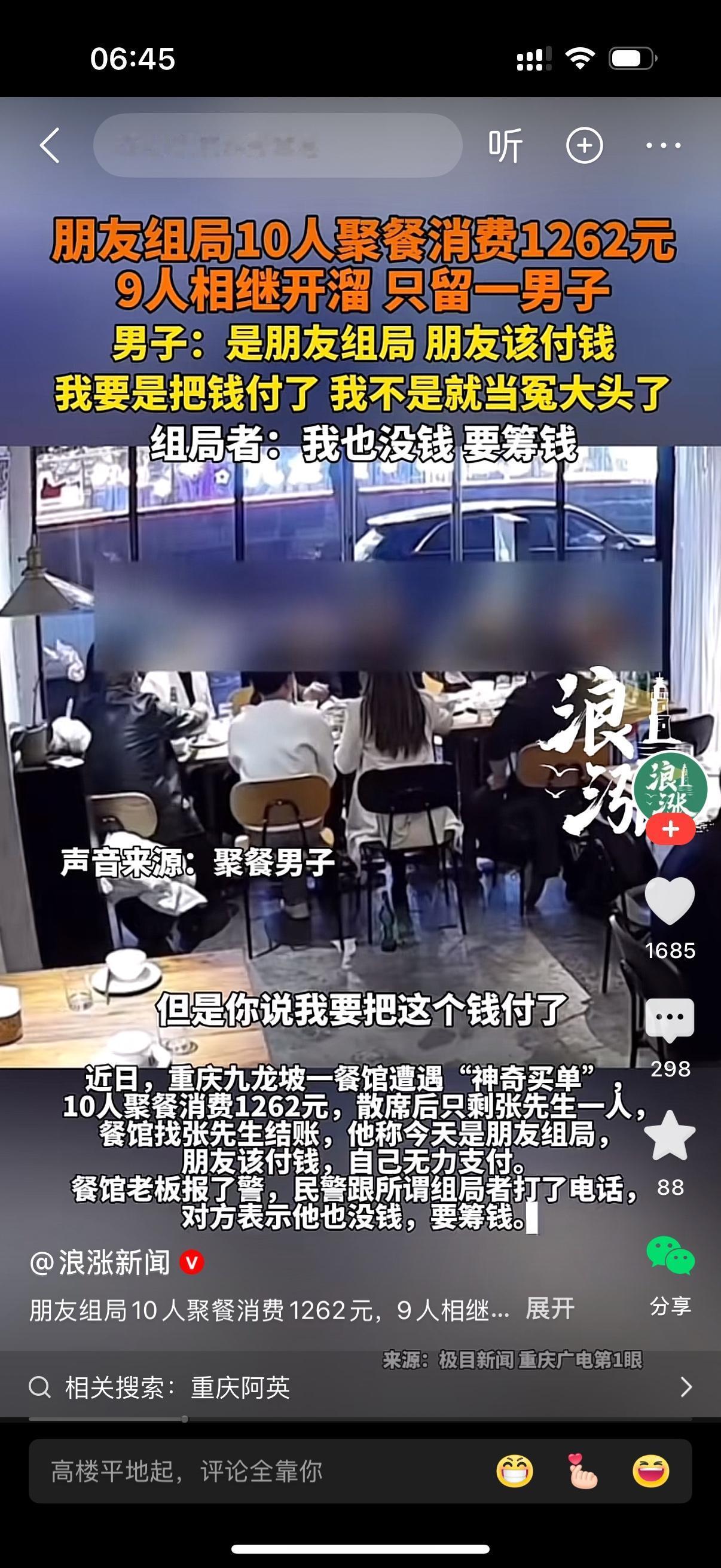 朋友组局聚餐,10个人消费1262元。饭后,组局者等9人相继开溜,只留下张先生一人。餐馆找张先生结账,男子称今天是朋友组局,朋友该付钱,自己无力支付。餐馆报了警,帽子叔叔给所谓组局者打了电话。对方说他也没钱,要筹钱。没有办法,张先生只能签下保证书,答应第二天交付。可到了第二天,张先生又反悔了,他表示自己付了这个钱就是冤大头。这个钱还是应当组局者来付。