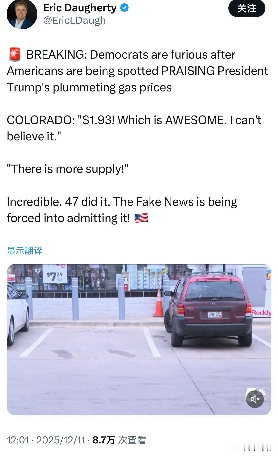 突发新闻:美国民众被发现称赞特朗普总统大幅降低汽油价格,民主党人对此感到愤怒 科罗拉多州:“1.93美元!太棒了!简直难以置信。” “供应更充足了!” 根据搜索结果,QuikTrip 6477 E Evans Ave 站点的 $1.69 价格是科罗拉多州最便宜的汽油价格之一。 夏威夷地区是全美汽油价格最高的地区,每加仑3.59美元。加州的油价,因为征收消费税和其他原因,也居高不下,油价在$2.99-$3.35之间。