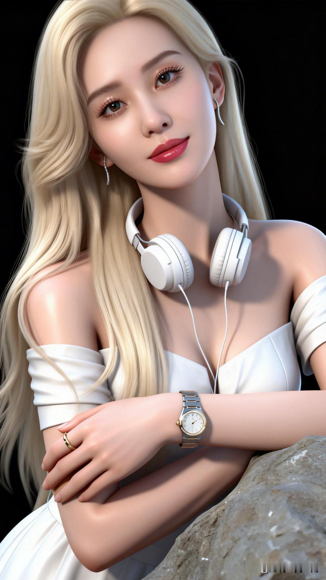 金发玉腕,耳机轻抚。一眼沦陷的神级美图 温柔女神风,白色连衣裙搭配耳机,优雅动人!👗🎧