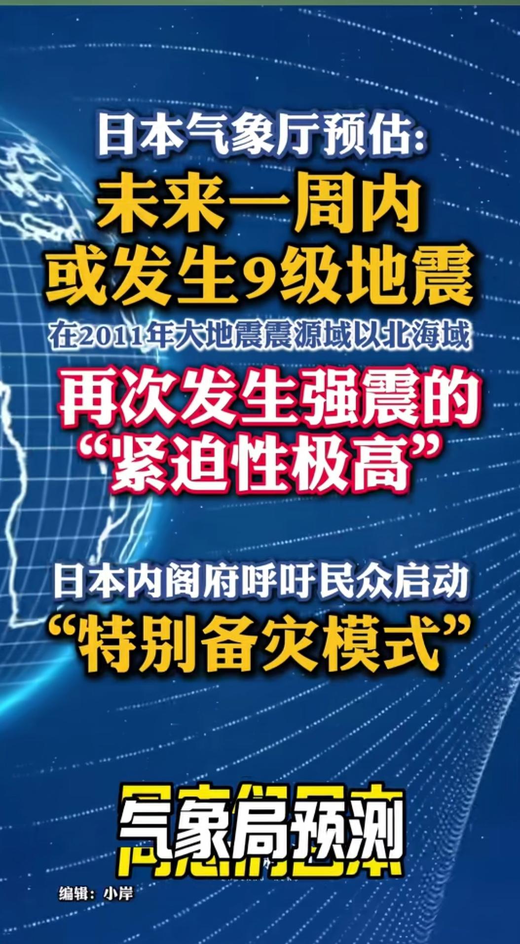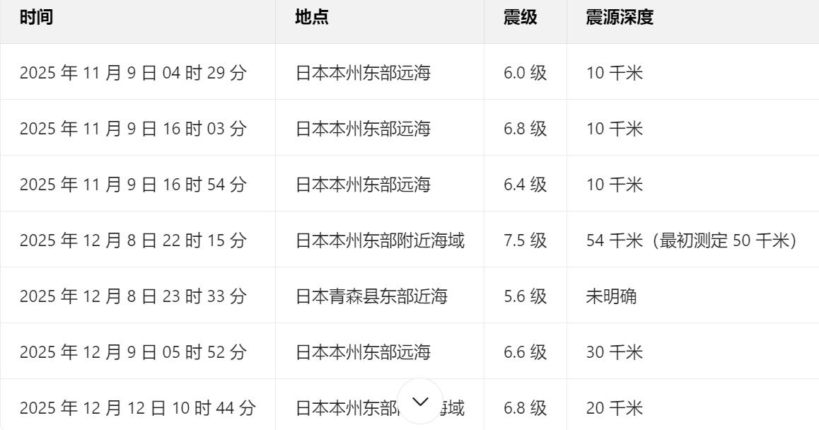 非人为导致日本一天发生三次地震!日本本州东部发生的 6.8 级地震既非人为因素导致又非气象属性是由板块运动引发的自然地质现象! 12 月 12 日上午,日本本州东部附近海域再发 6.8 级地震(日本气象厅修正为 6.7 级),震源深度 20 千米,气象厅已对东北地区及北海道中部太平洋沿岸发布海啸注意预警,预计最大浪高 1 米,第一波海啸已于中午前后抵达沿岸,根据大数据统计,12.8日到今天中午发生7场5.6级地震,而小震更是不计其数!怪不得中国外交部不提倡大家去日本! 最近频繁的地震说明了日本板块进入活跃地带,如果不及时转移日本民众,很容易出现更大范围的海啸以及经济损失,预测的先知明确告诉日本民众日本灭亡在2035年前后,所有日本正在面临民族生存危机! 看来留给日本人的时间不多了,转移安置将会成为沈阳人最热议的话题,您支持日本人来中国吗?