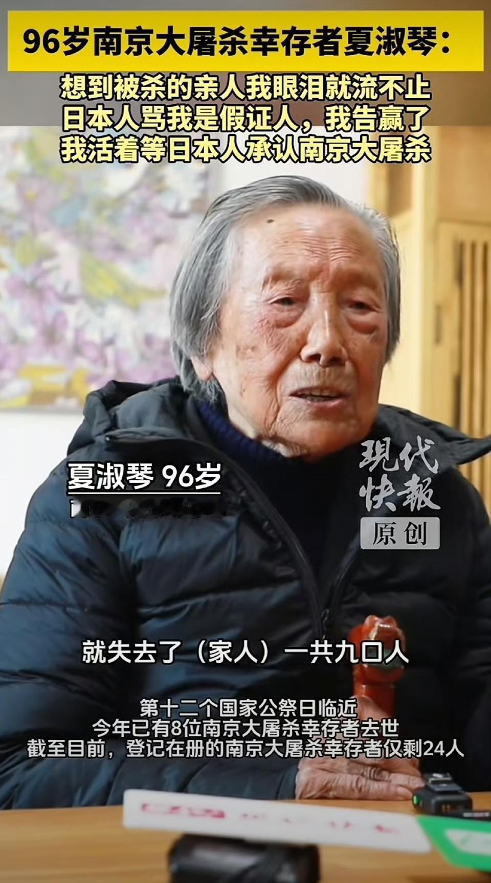 泪目!96岁南京大屠杀幸存者:只要我还能说,就绝不停止讲述 “只要我还能开口,就要把这段历史讲下去!”96岁的南京大屠杀幸存者,在纪念馆口述史录制现场字字铿锵,让无数人瞬间红了眼眶。 1937年的南京城,是她一辈子的噩梦。那年她才8岁,日军的铁蹄踏破家园,父母、兄妹7人惨遭杀害,她身中3刀,躲在尸体堆里才侥幸活下来。那些浸透血泪的画面,不是书本上冰冷的文字,而是刻在骨血里的伤痛。 这些年,老人拖着佝偻的身躯,一次次走进校园、站上讲台,一遍遍重复那段山河破碎的岁月。有人问她累不累,她总说:“我多讲一次,就多一个人记住,就少一个人忘记。” 如今,登记在册的南京大屠杀幸存者已不足40位,他们是历史的“活证”,是活着的“纪念碑”。每一次讲述,都是对遇难同胞的告慰,更是对和平的呐喊。 岁月会带走亲历者的身影,但带不走刻在民族记忆里的伤痕。铭记历史从不是为了延续仇恨,而是为了不让悲剧重演。你愿意为这些守护记忆的老人点个赞吗?侵华日军大屠杀 南京大屠杀 上海南京大屠杀 南京大屠杀罪犯 南京抗日战争 徐州大屠杀 抗日南京
