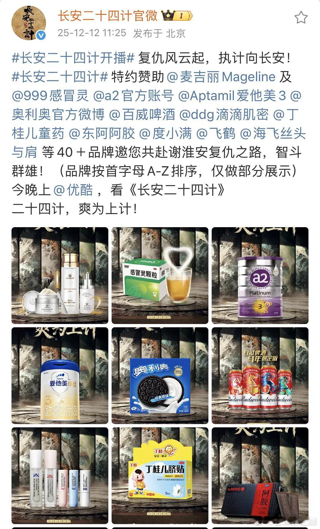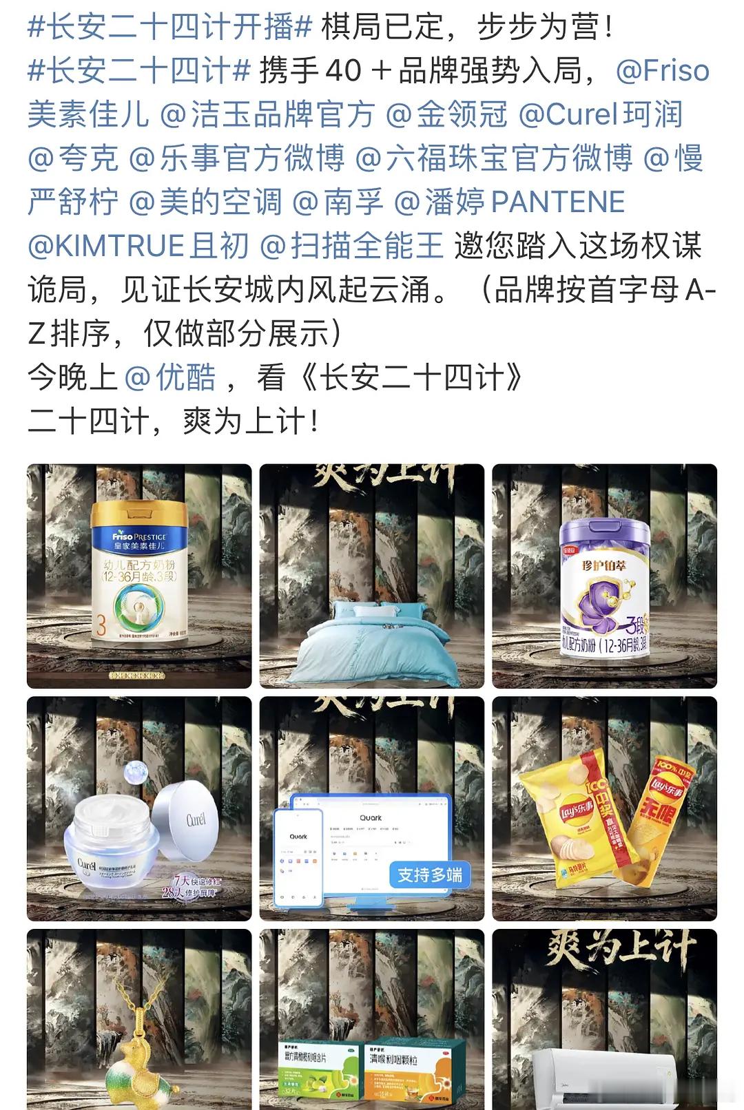 《长安二十四计》今日开播,四个月上了3部剧,依旧手握40+品牌,而且不少品牌是跟