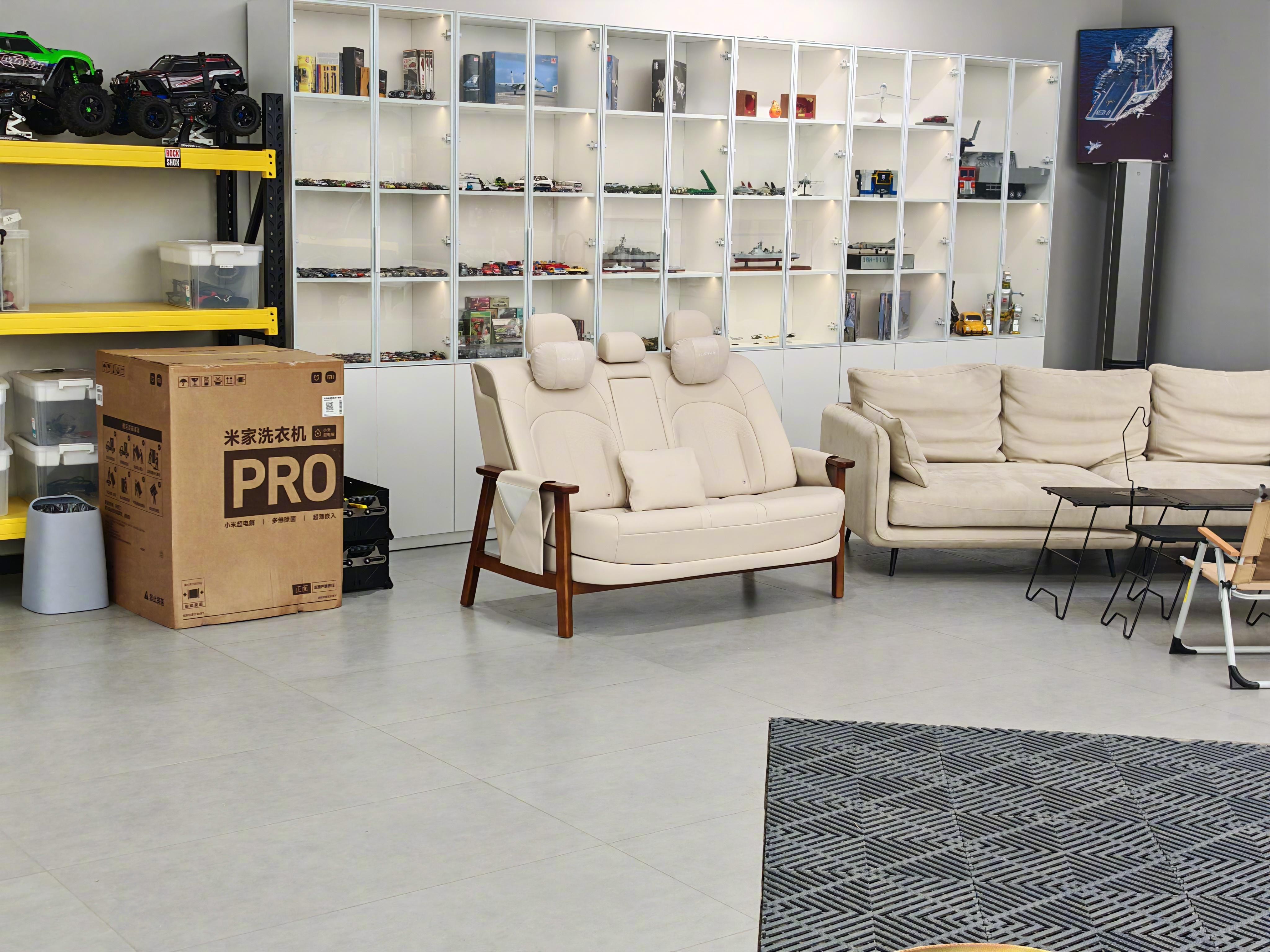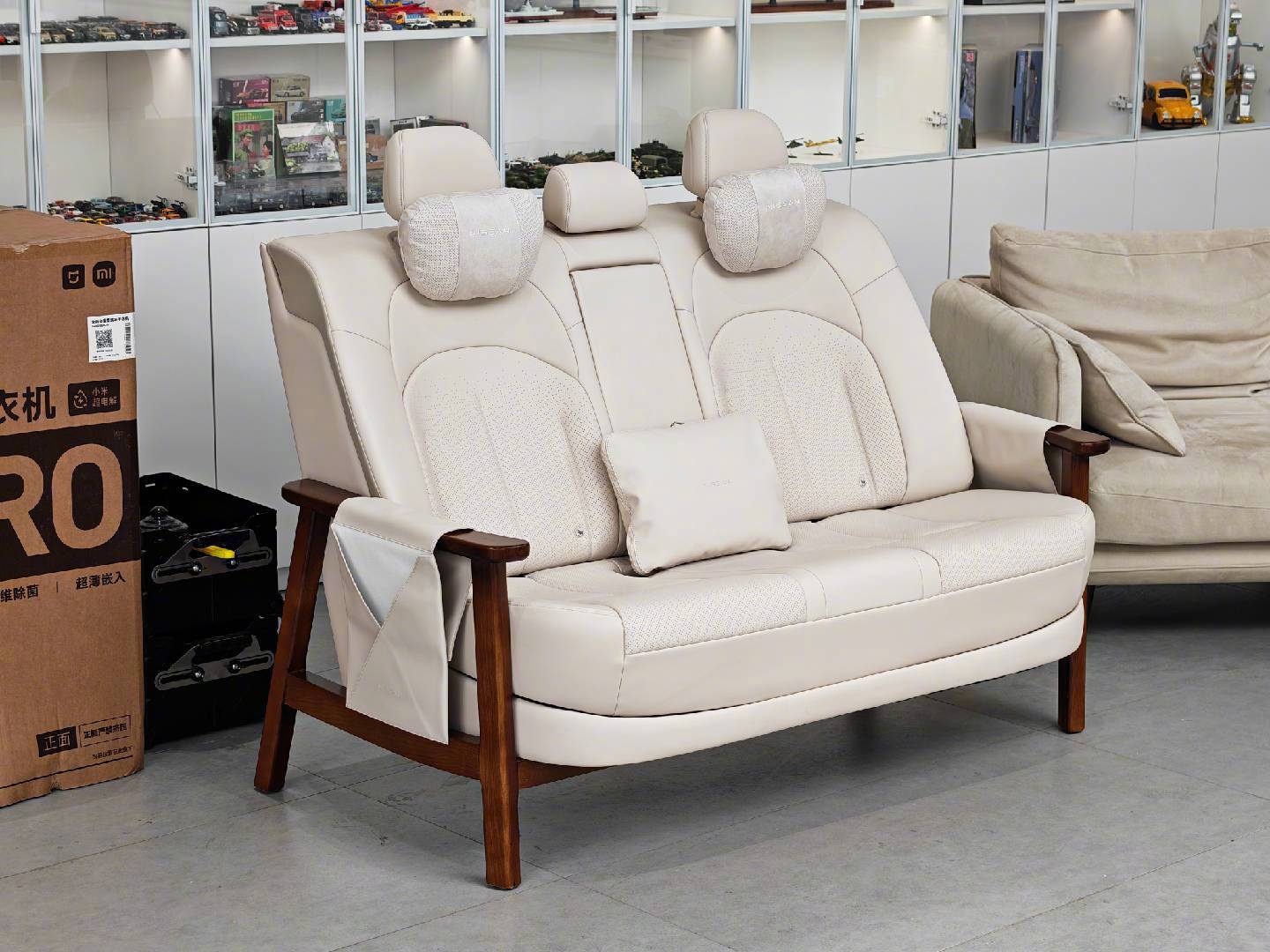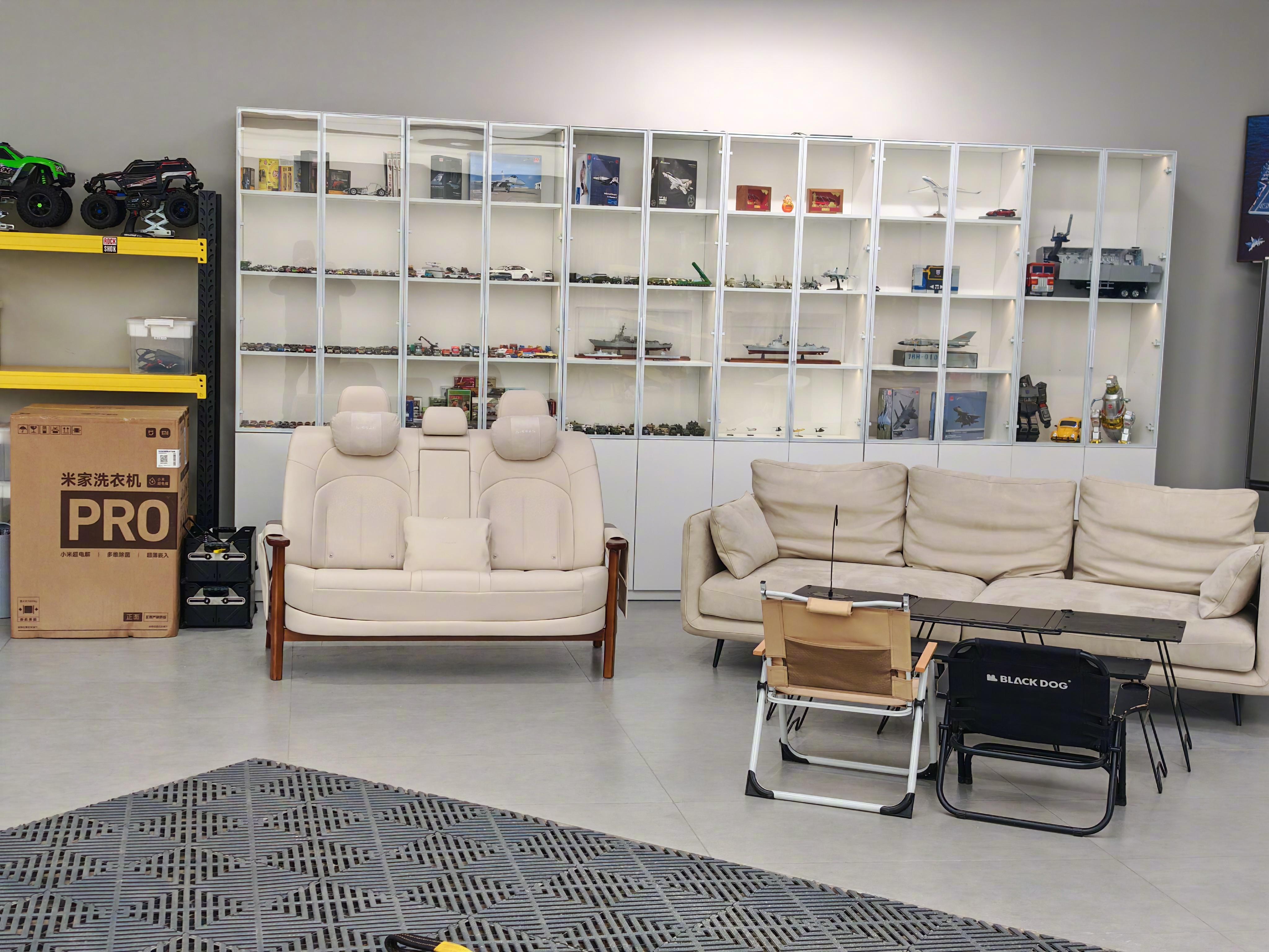 东风日产N6后排改装的大沙发,一直在我家院子放着,因为车规级座椅改的沙发,用料极猛特别重,我自己搬不进屋子,外加家里没合适空间放,最后让搬家公司拉车库来了。放车库的休闲茶歇区很合适啊!这沙发特别舒服,并且车规级远超家具的耐用度和环保,属于最顶级家具了。关键是坐着真心舒服,也带仿迈巴赫软枕。东风日产用后座改沙发这招其实特别有网感,又能传播自己产品特点,又能得到猎奇类流量,一步好棋。另外N6也小爆单了,性价比很高的10-15万级插混轿车,座椅老舒服了。